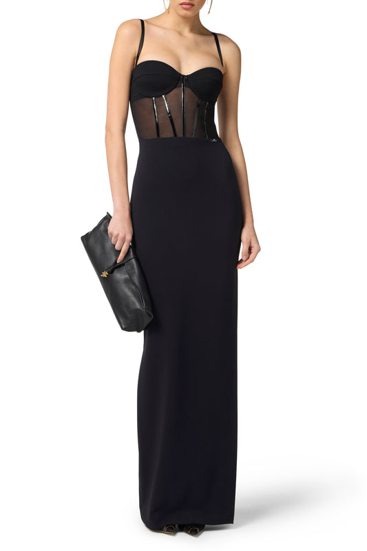 Red Carpet dress in jersey with embroidered bodice