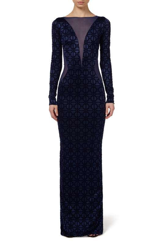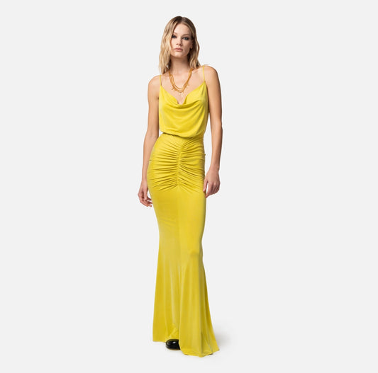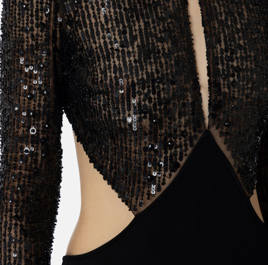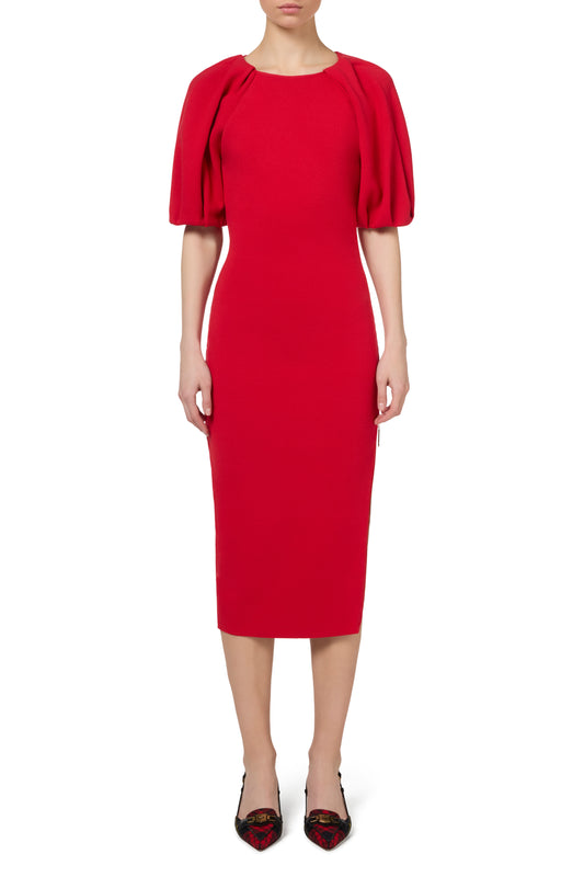 Red carpet dress in crêpe fabric with cut-out and embroidery