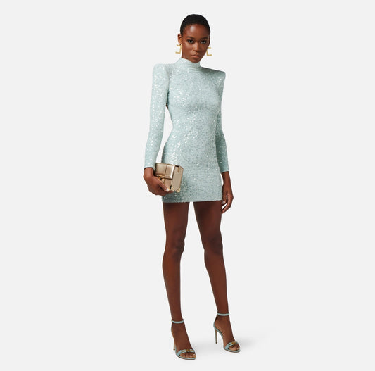 Mini-dress made of sequins with structured shoulders