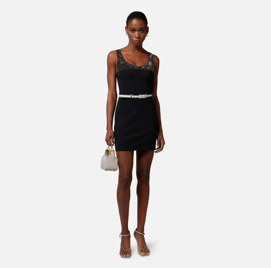 Mini-dress in crêpe fabric with embroidered bodice
