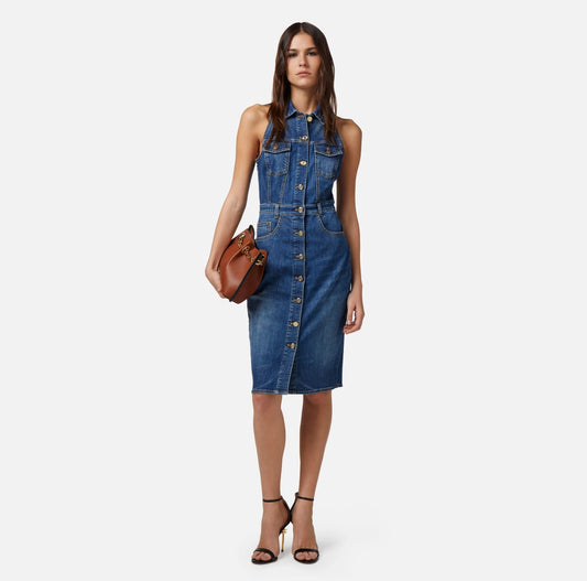 Denim midi dress with row of buttons