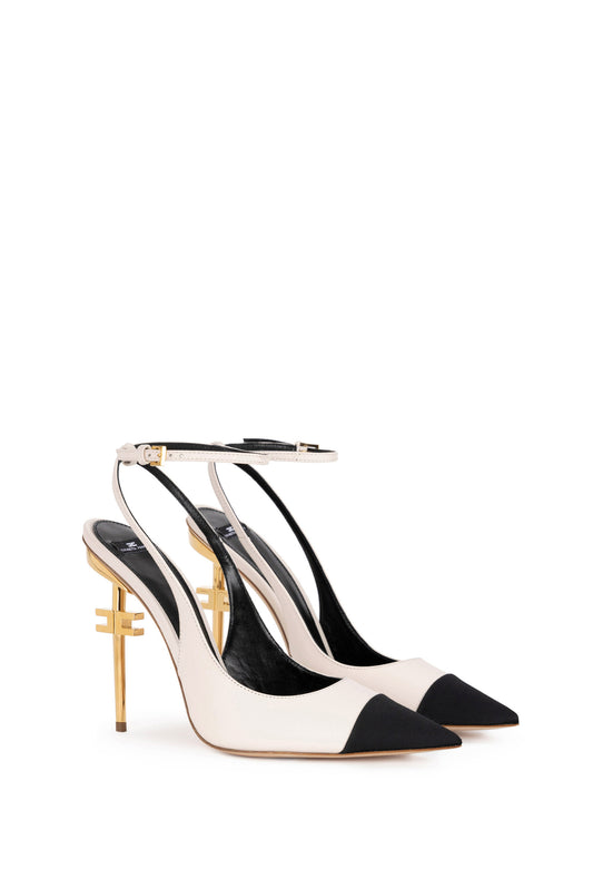Leather pumps with logoed ribbon