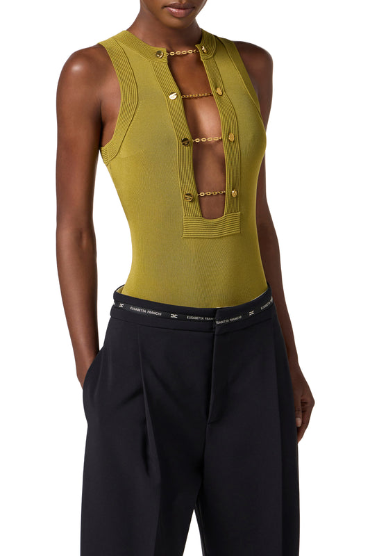 Viscose knit bodysuit with jewel cufflinks