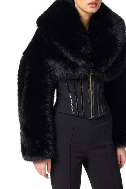 Jacket with fur effect and double-layer crêpe fabric