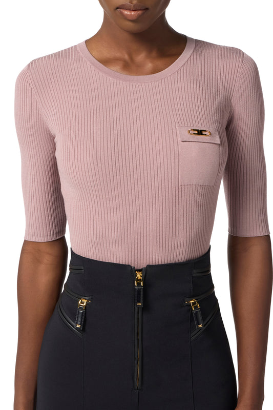 Ribbed knit top with breast pocket