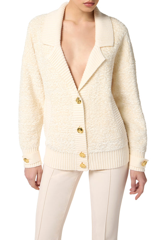 Bouclé chenille cardigan with jewel buttons