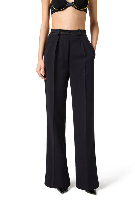 Trousers in lightweight crêpe fabric with tuxedo details