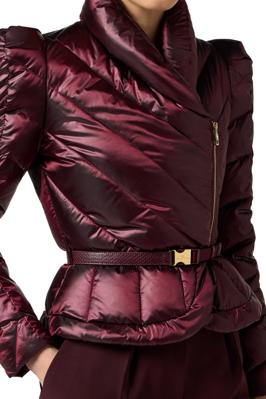Down jacket in voile fabric with peplum