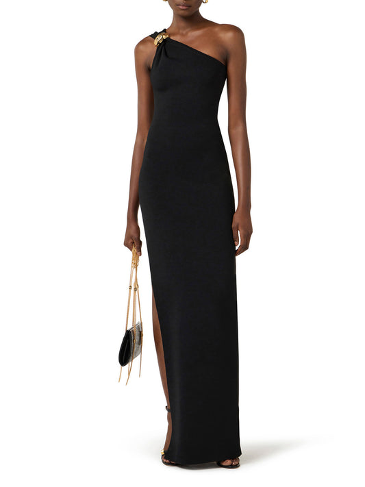 Dress in crêpe jersey fabric with jewel strap