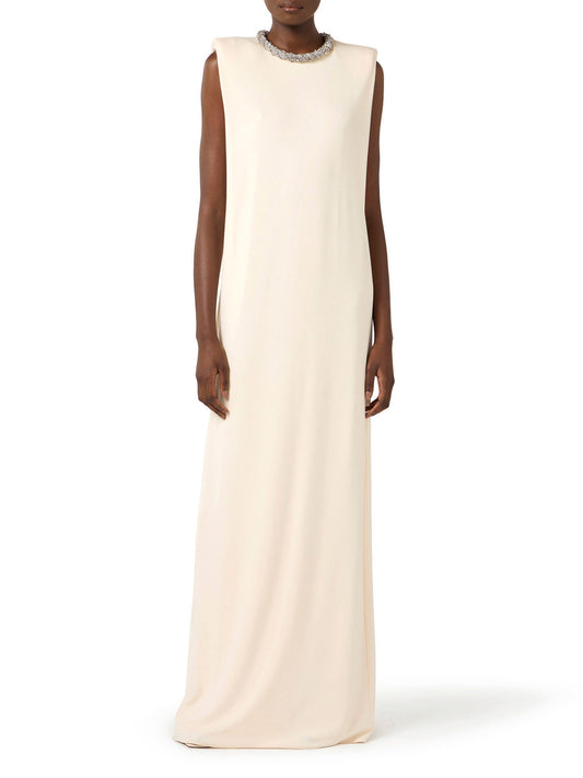 Red Carpet dress in crêpe fabric with jewel detail