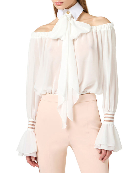 Blouse in georgette fabric with sash belt