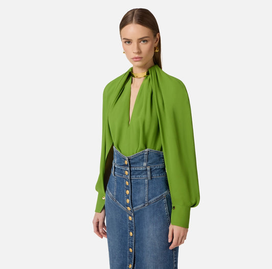 Bodysuit in silk georgette fabric with sash