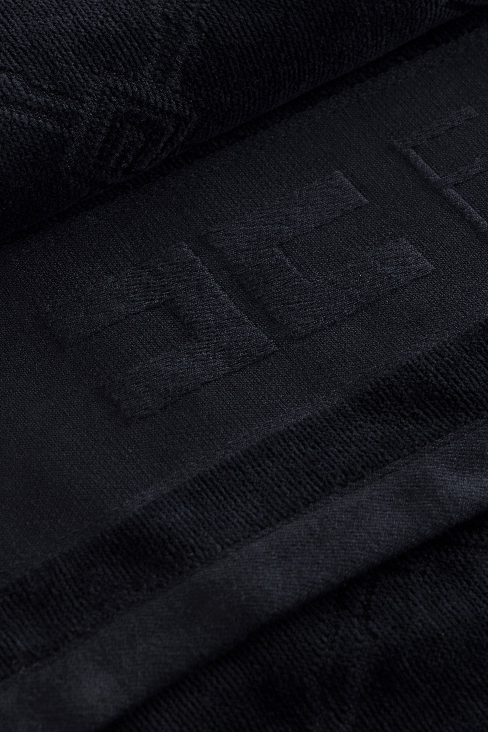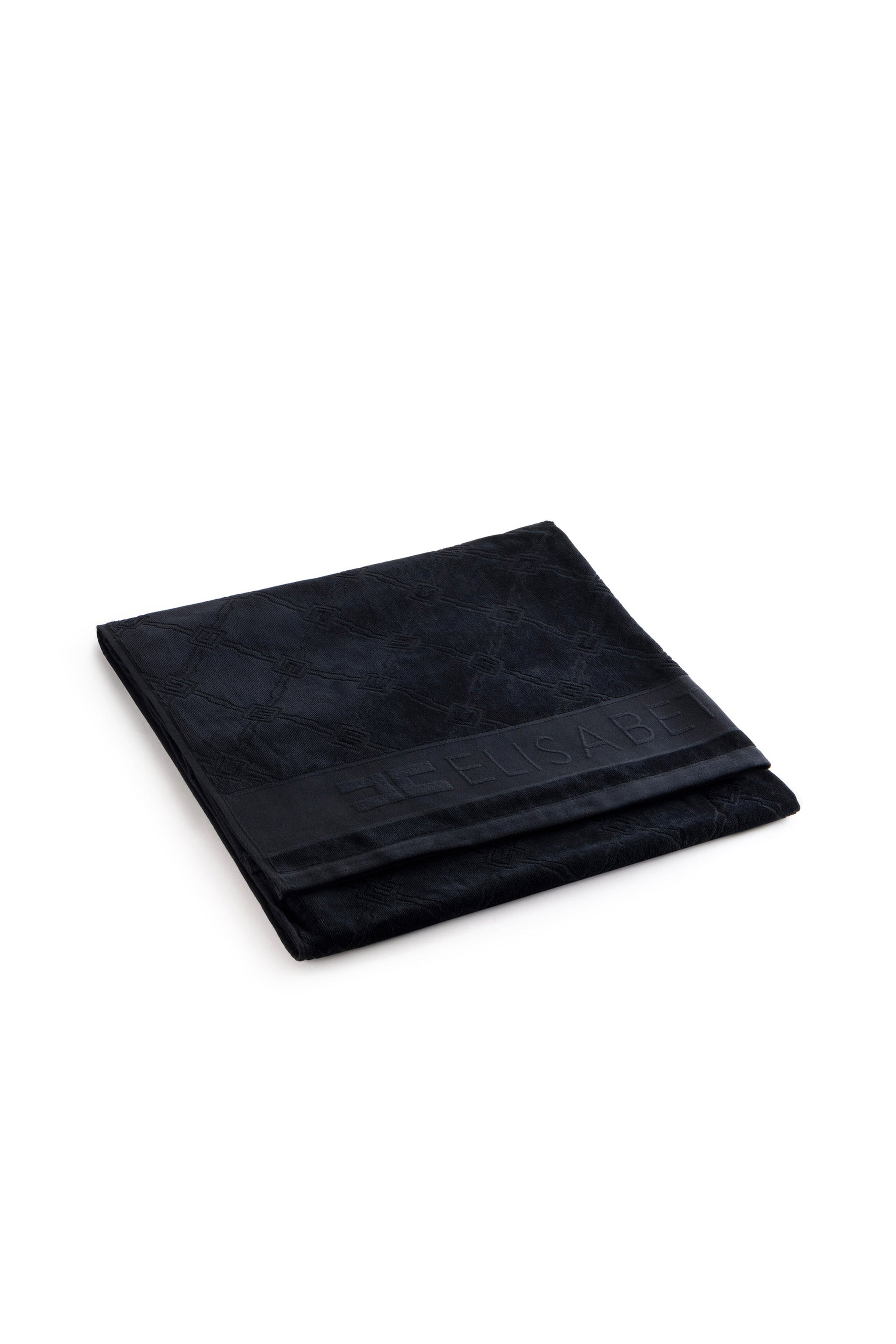 Beach towel in jacquard terry cloth with diamond pattern from the collection. It has a solid-coloured frame with logo.