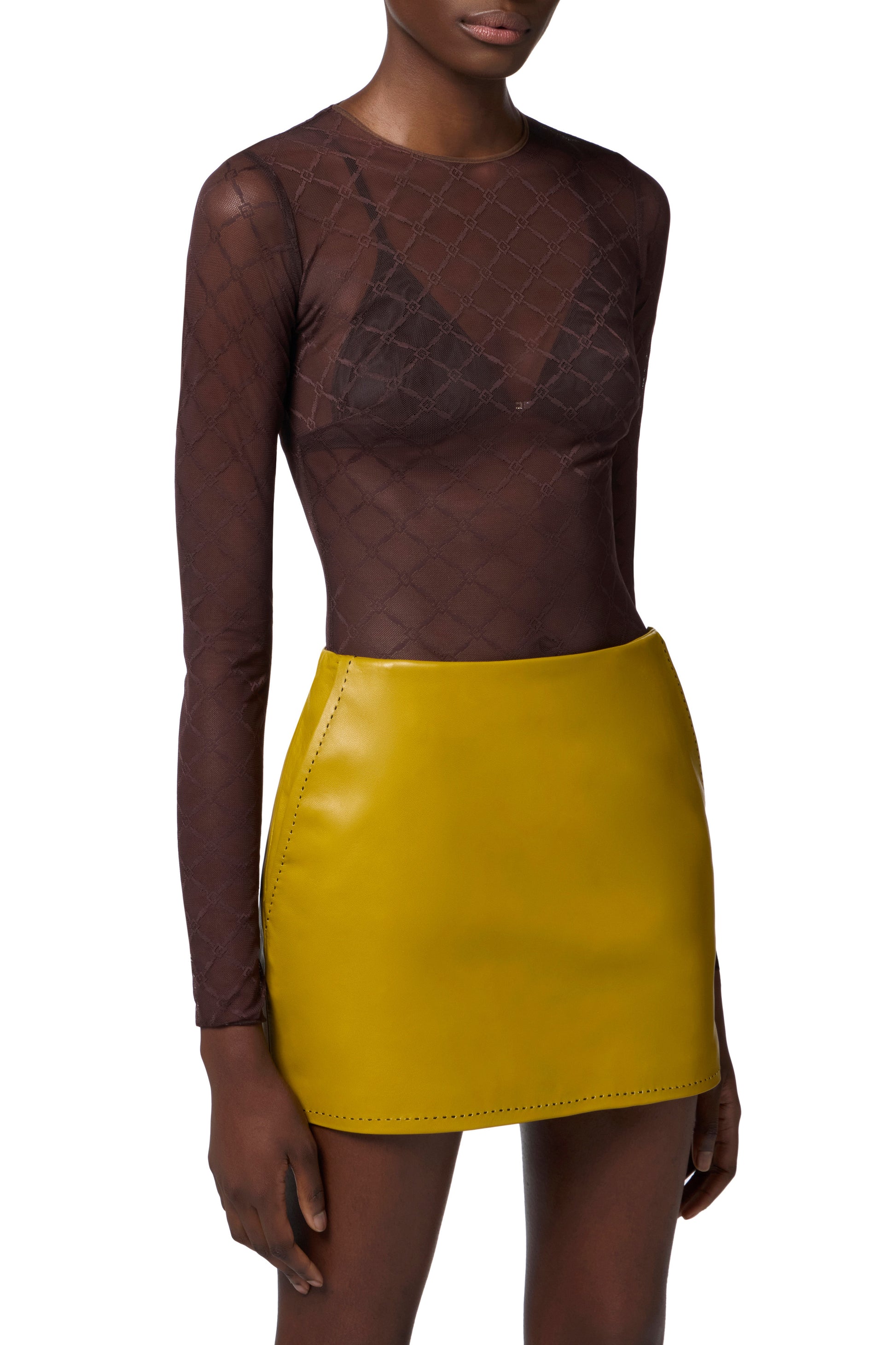 Bodysuit in jacquard tulle fabric with all-over diamond pattern. It has long sleeves and crew neck with opening on the back. Slim fit.