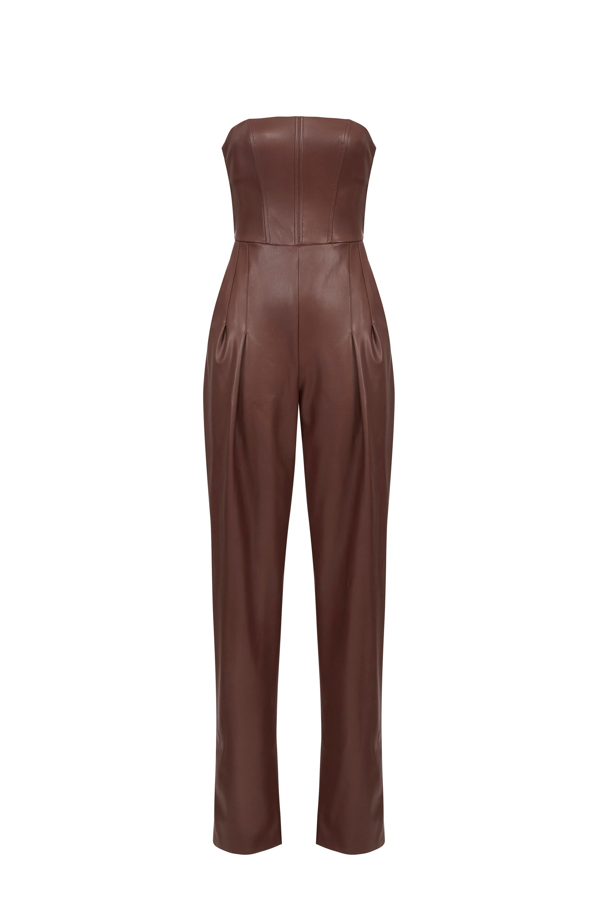 Bustier jumpsuit with nappa leather texture