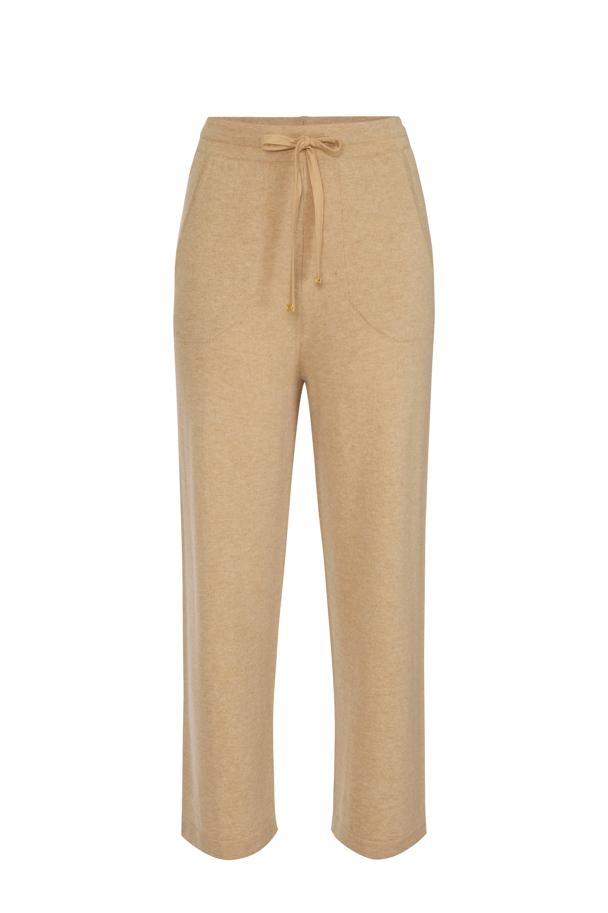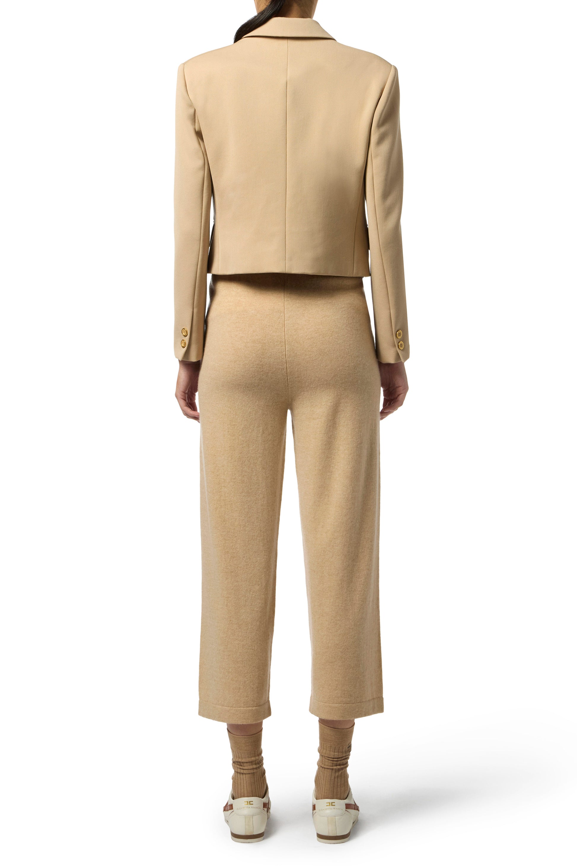 Cashmere blend trousers with regular fit. With slant pockets and ankle length, they are characterised by a soft texture that caresses the skin. Golden metal tips embellish the drawstring at the waist.