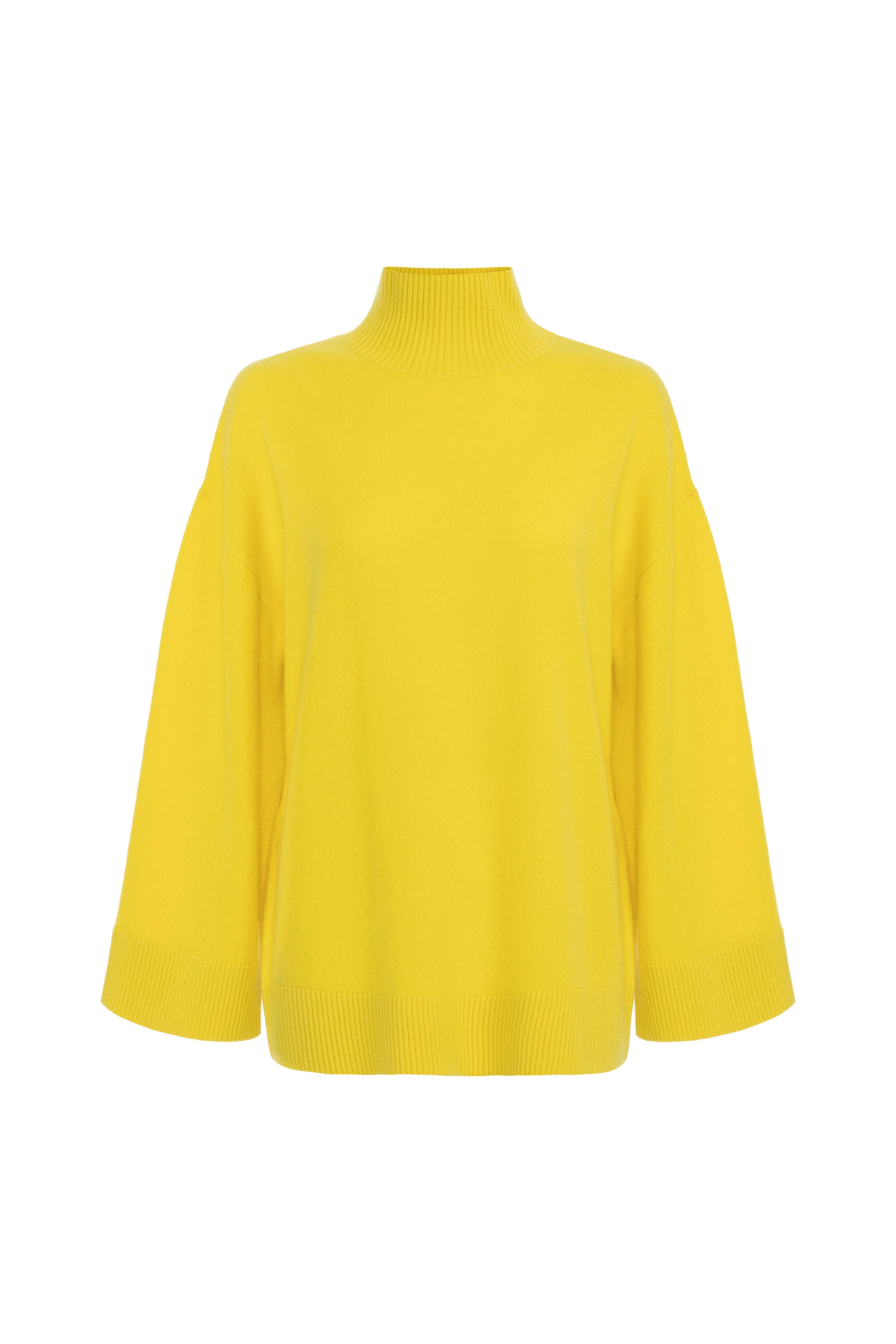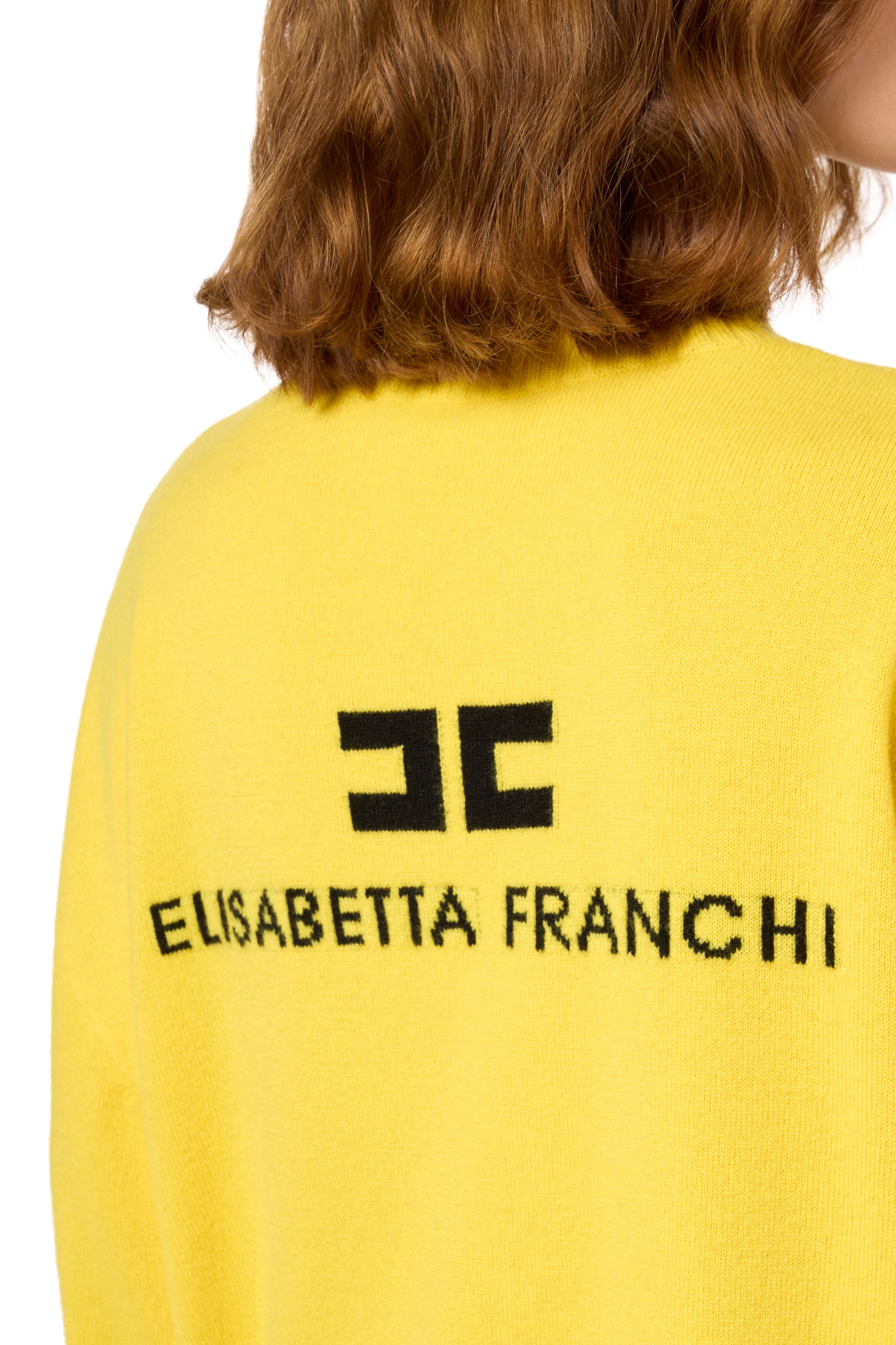 Cashmere blend turtleneck with dropped shoulders. It features a contrasting colour inlaid logo at the back.