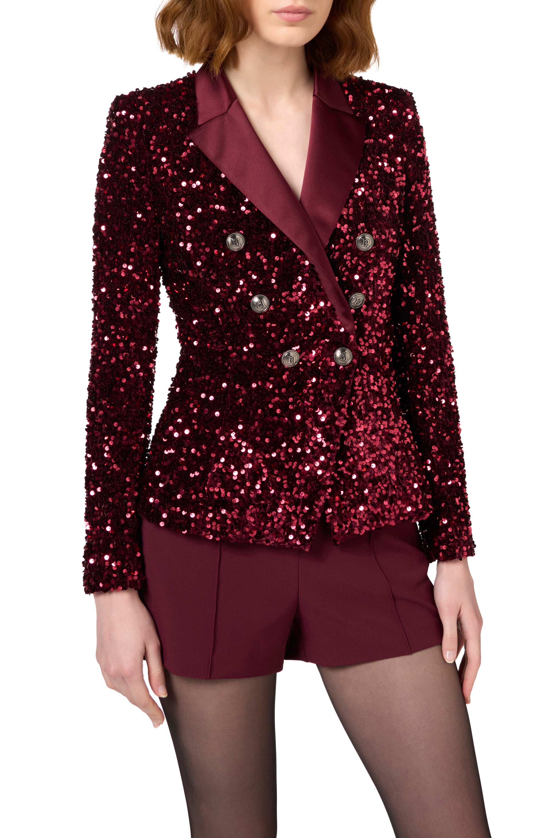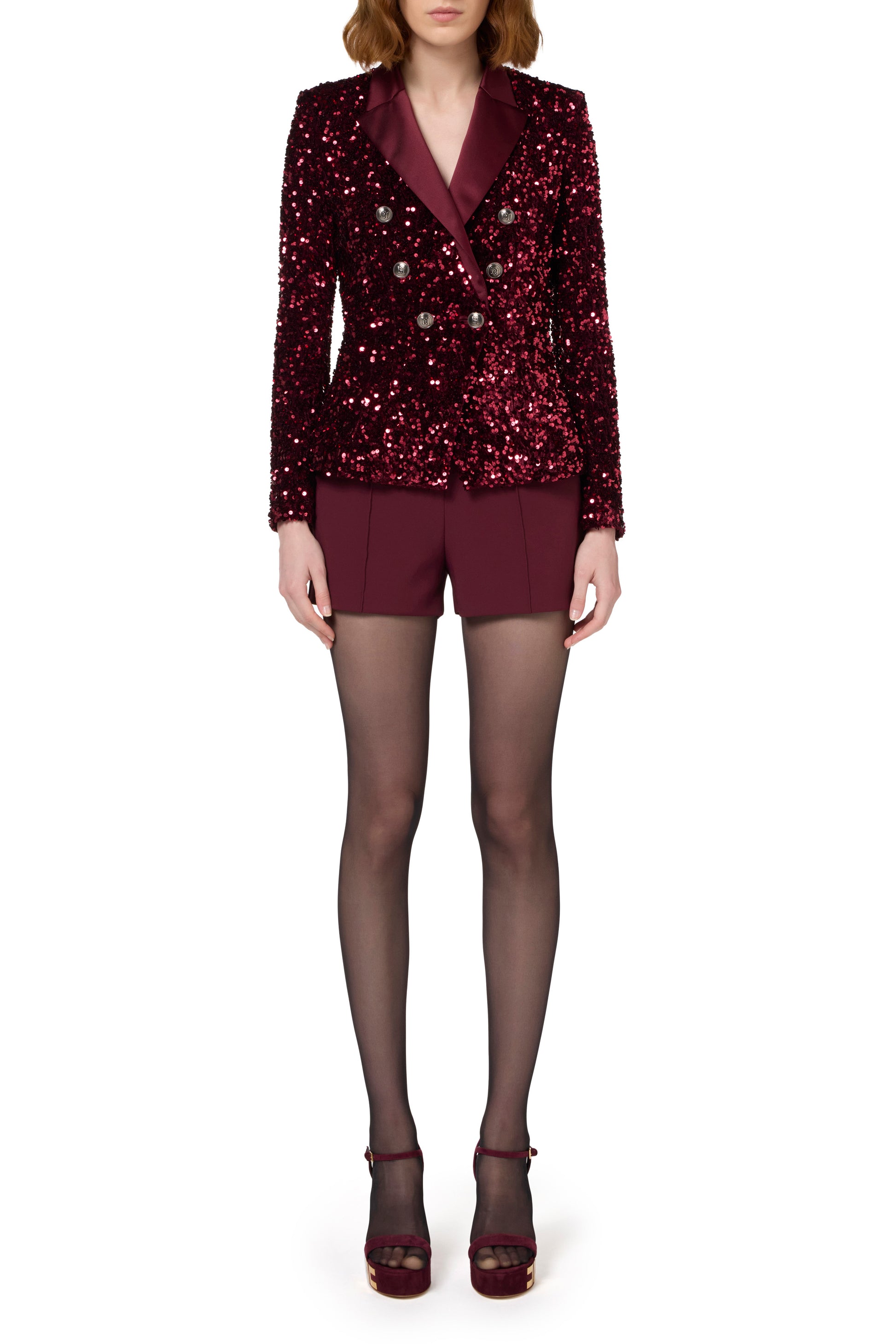 Chenille double-breasted jacket embroidered with sequins