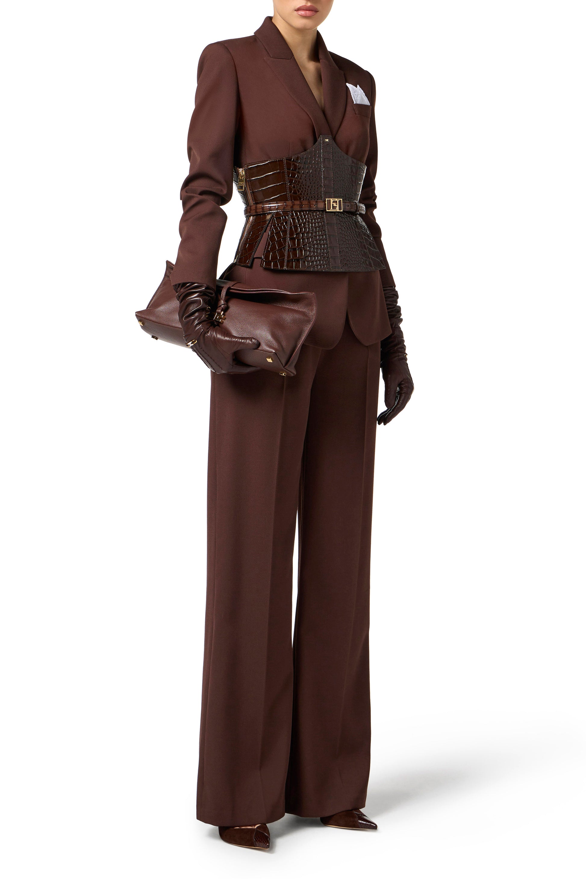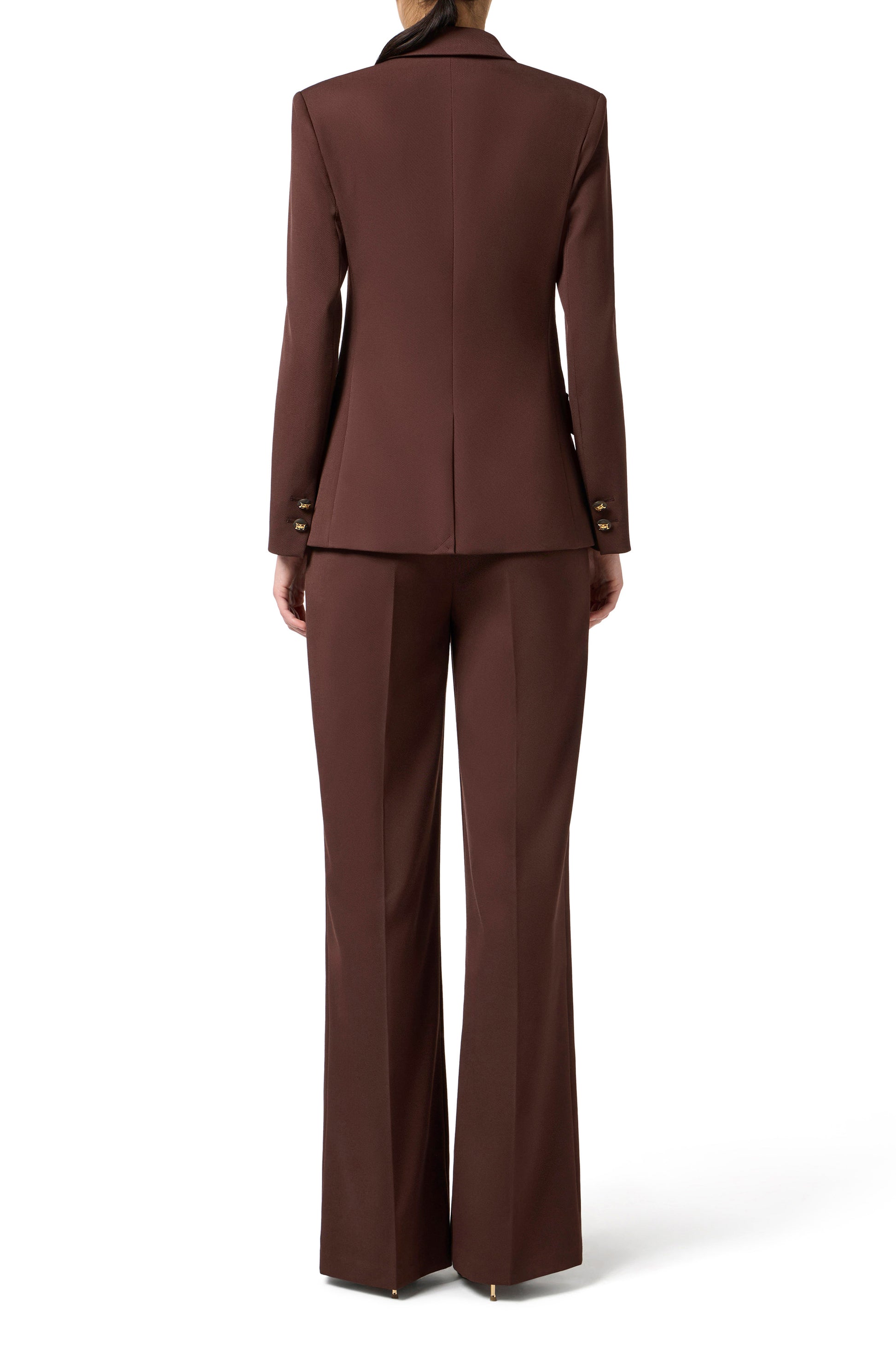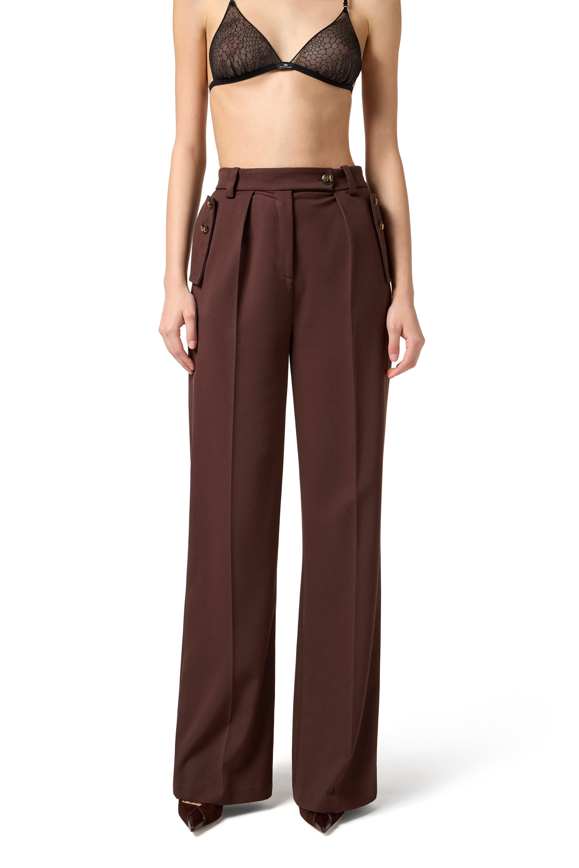Cotton gabardine trousers. Decorated with logo buttons that enhance the waist and pockets, they have a palazzo fit with deep darts shifting the focus on volume. Logo label on the back loop. Oversized fit.