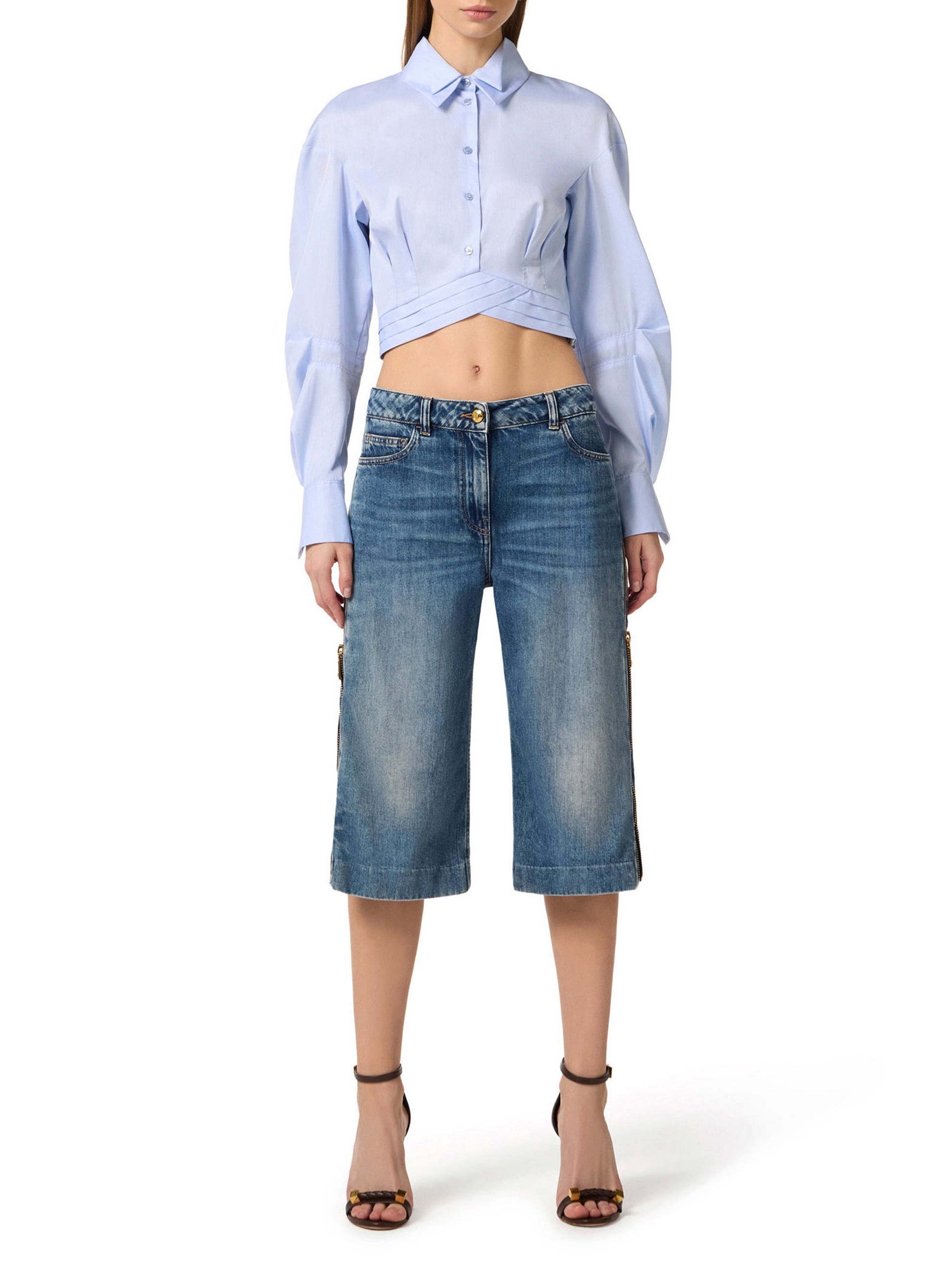 Cotton poplin shirt with waistband