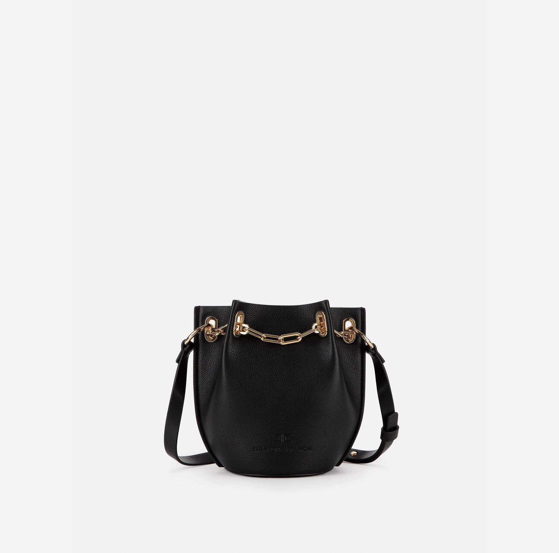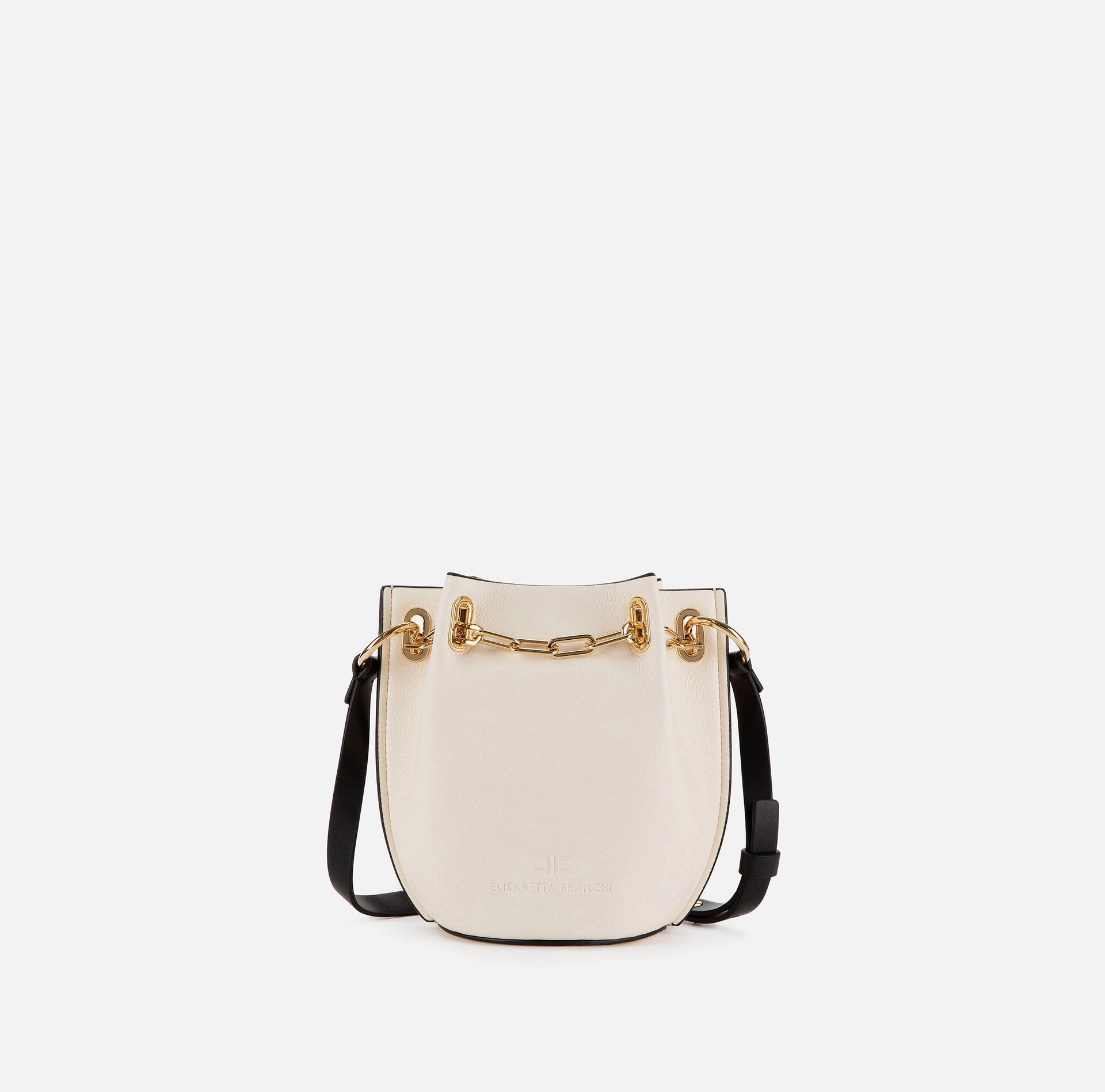 Small-sized Elisabetta Franchi Dune bucket bag with a strap for carrying it in hand or on your shoulder. An everyday bag that can be used to complete a refined, classy outfit to not go unnoticed. The light gold detail of the chain embellishes this complex handcrafted bag.