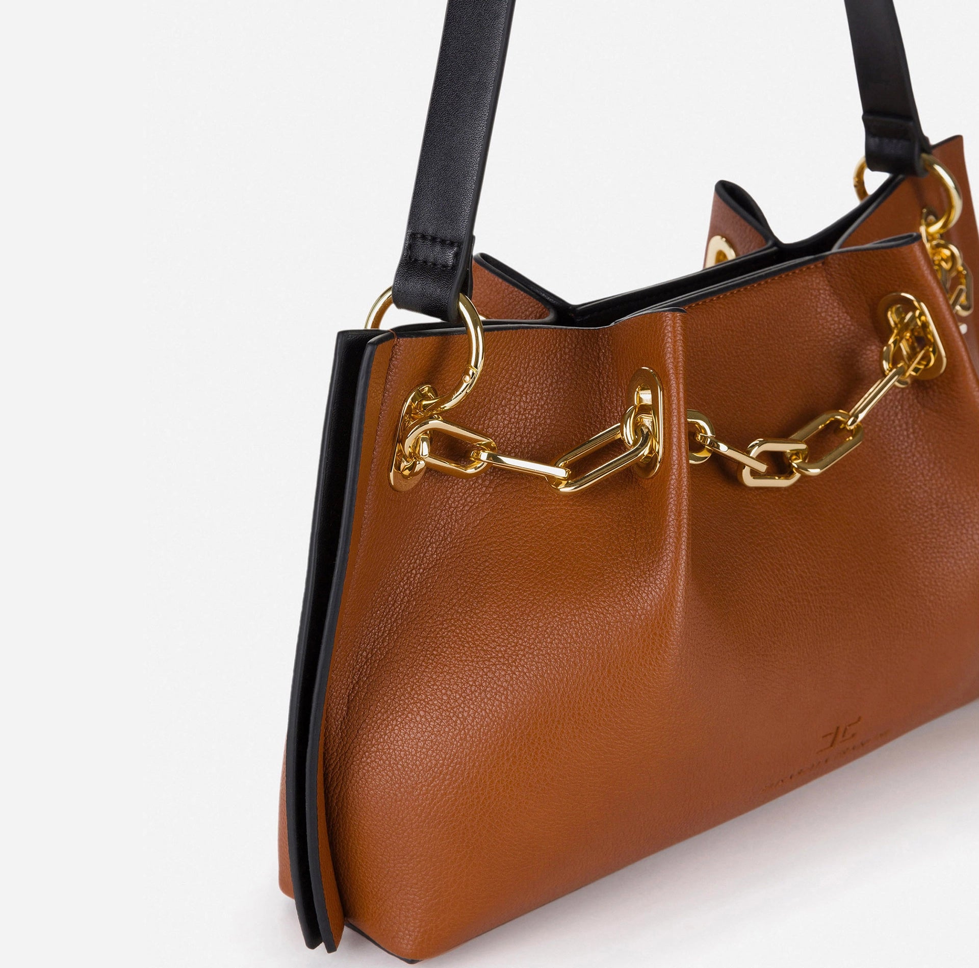 Dune Elisabetta Franchi pouch bag perfect for carrying on your shoulder. An everyday bag that can be used to complete a refined, classy outfit to not go unnoticed. The light gold detail of the chain embellishes this complex handcrafted bag.
