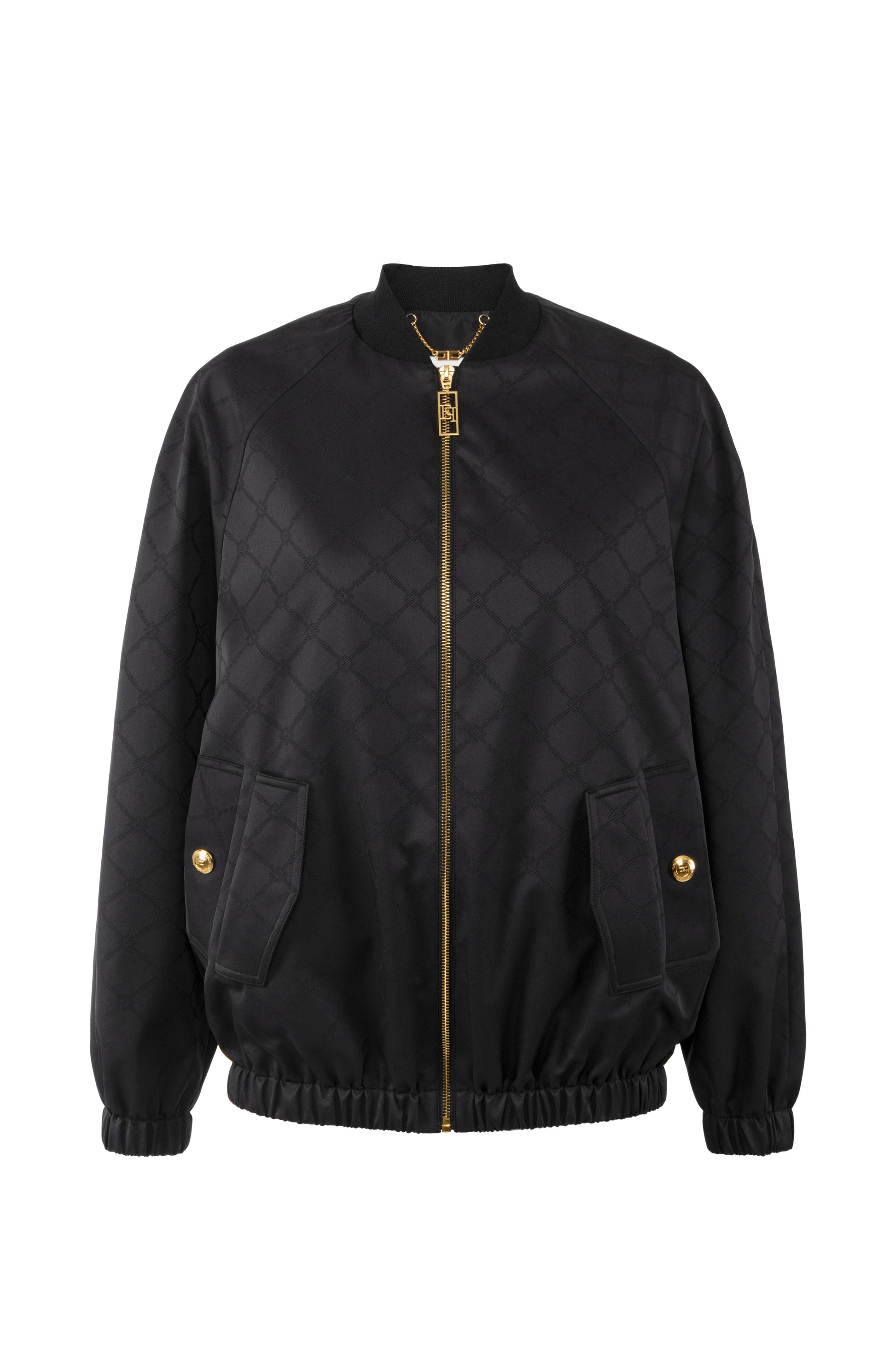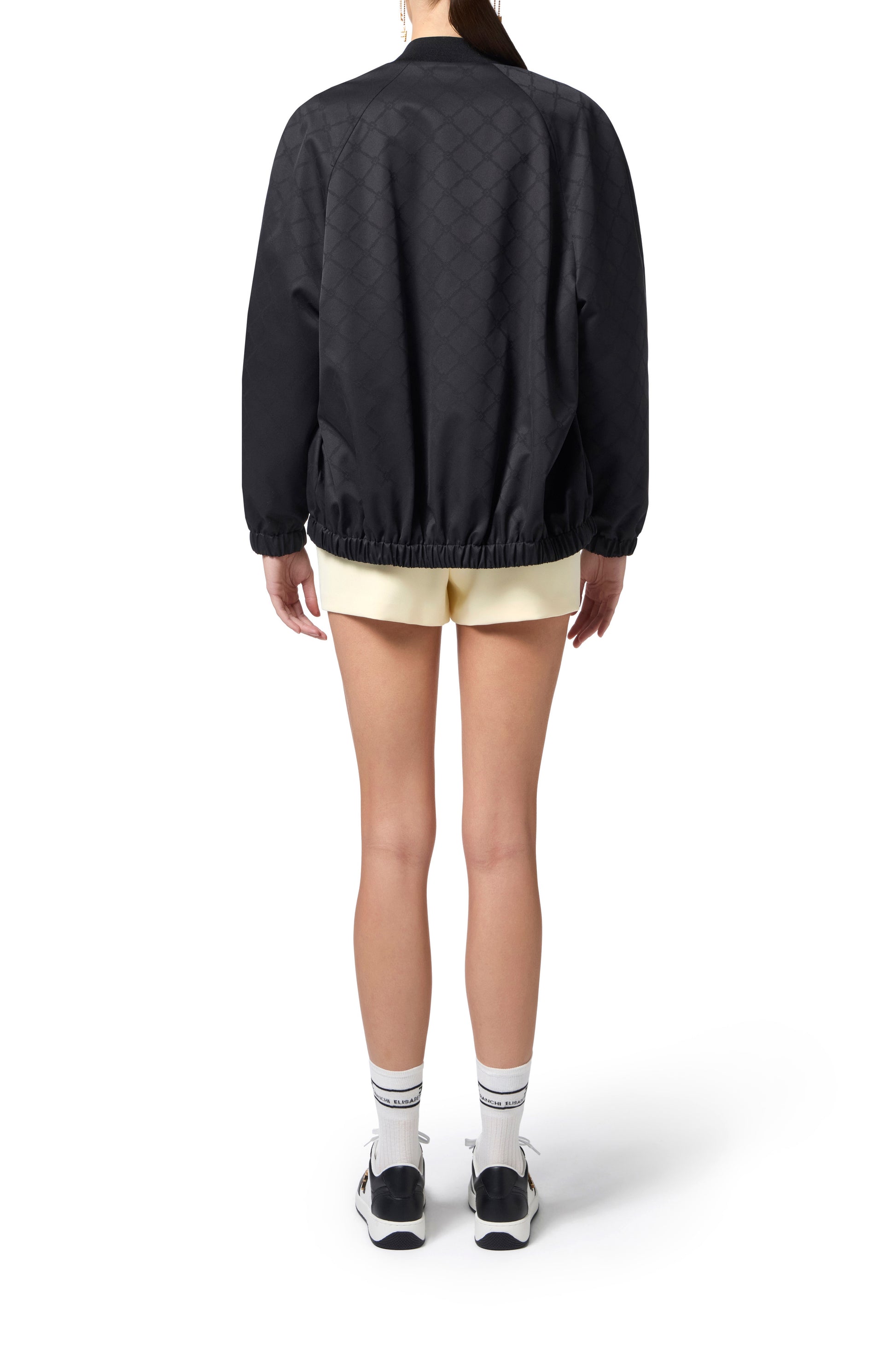 Jacket with high knit collar, made of jacquard voile fabric with all-over logo pattern. Raglan sleeves, cuffs and stretch bottom emphasise the oversize silhouette. Zip closure with logoed metal pull-tab.
