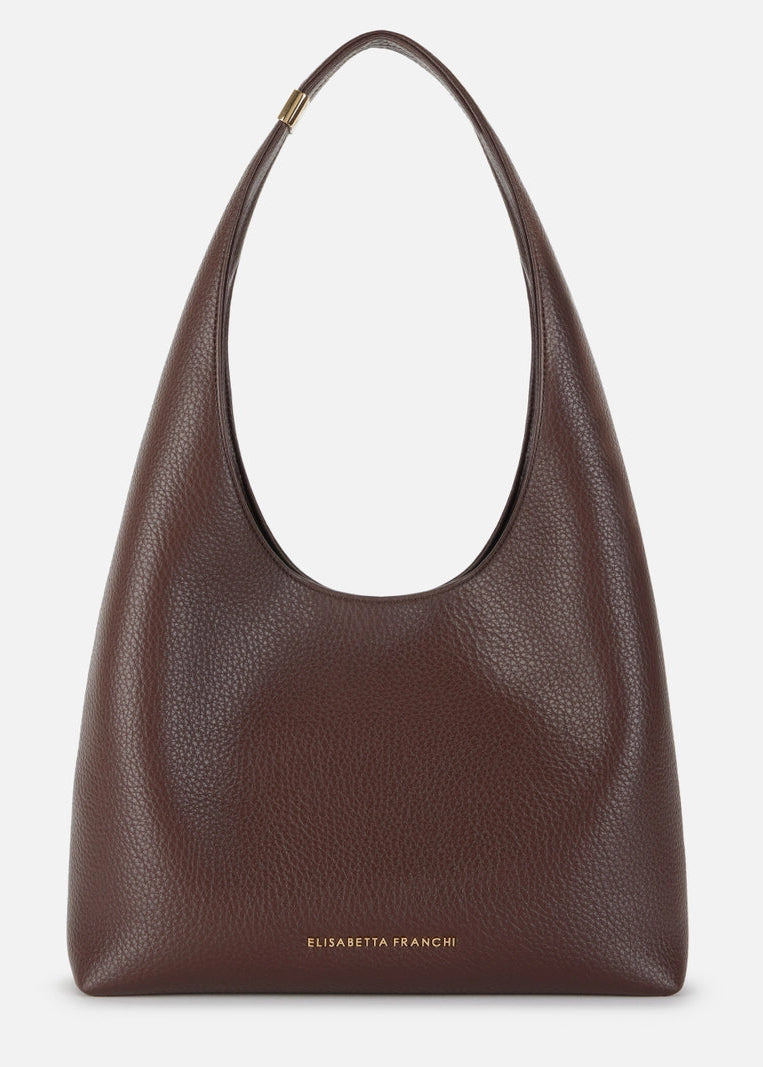 Large hobo bag made of leather-effect synthetic material. Personalized with a front logo, it features a gold metal logo plaque on the handle for a light touch.
