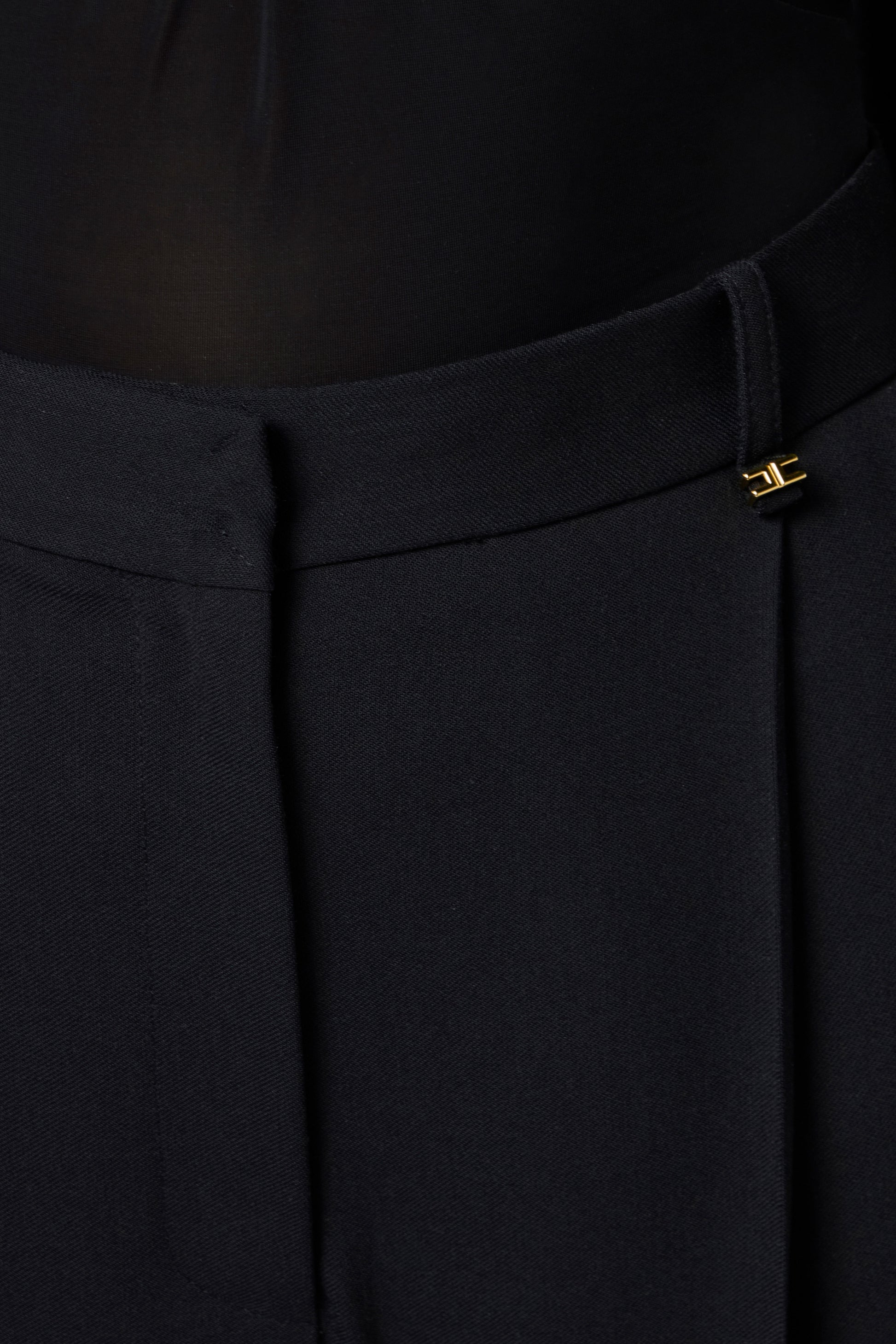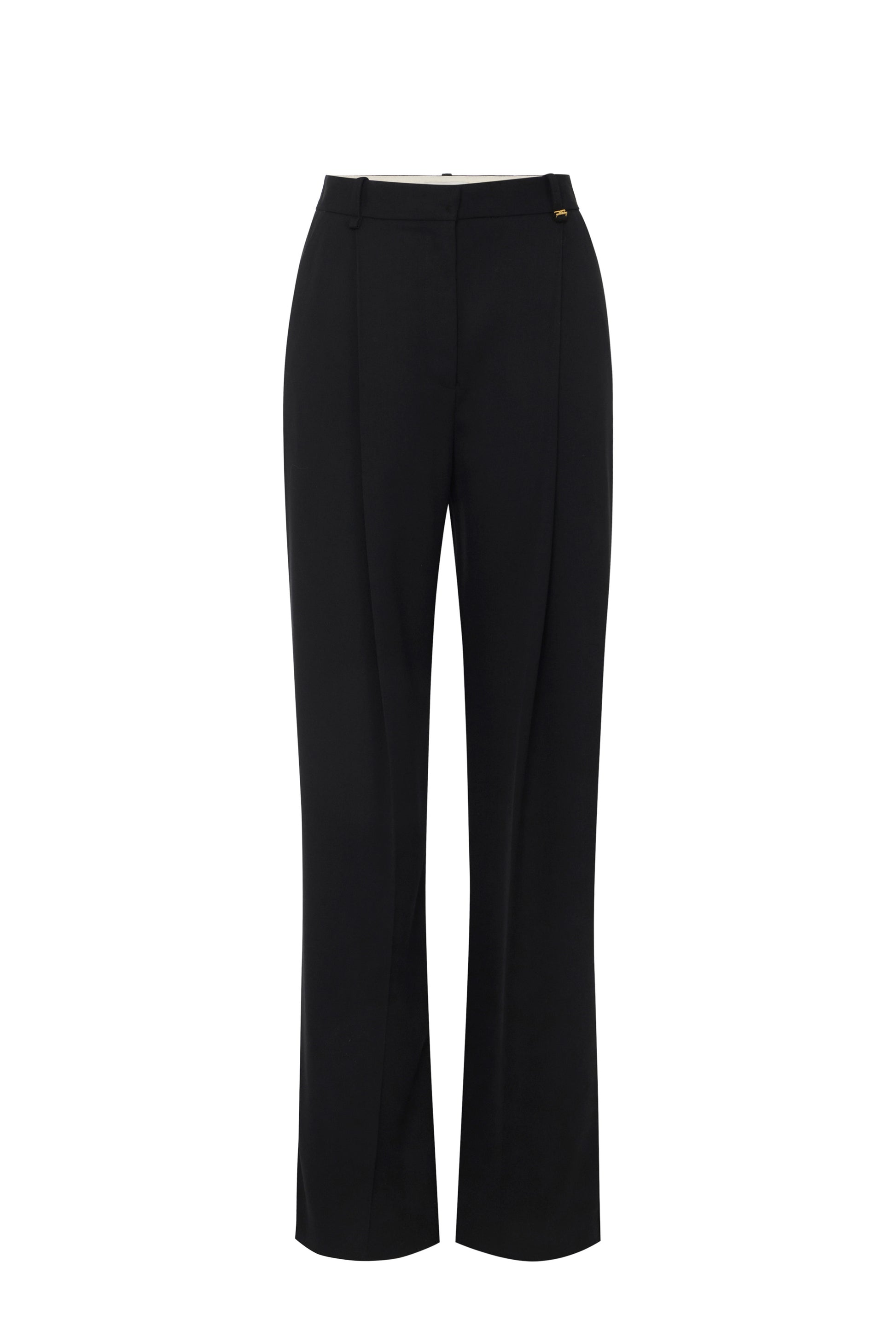 Trousers in lightweight cool wool fabric with regular fit. They stand out for the darted construction that creates a central pleat on the leg and defines the volume of the garment. The logo detail on the loop enriches the waistline.