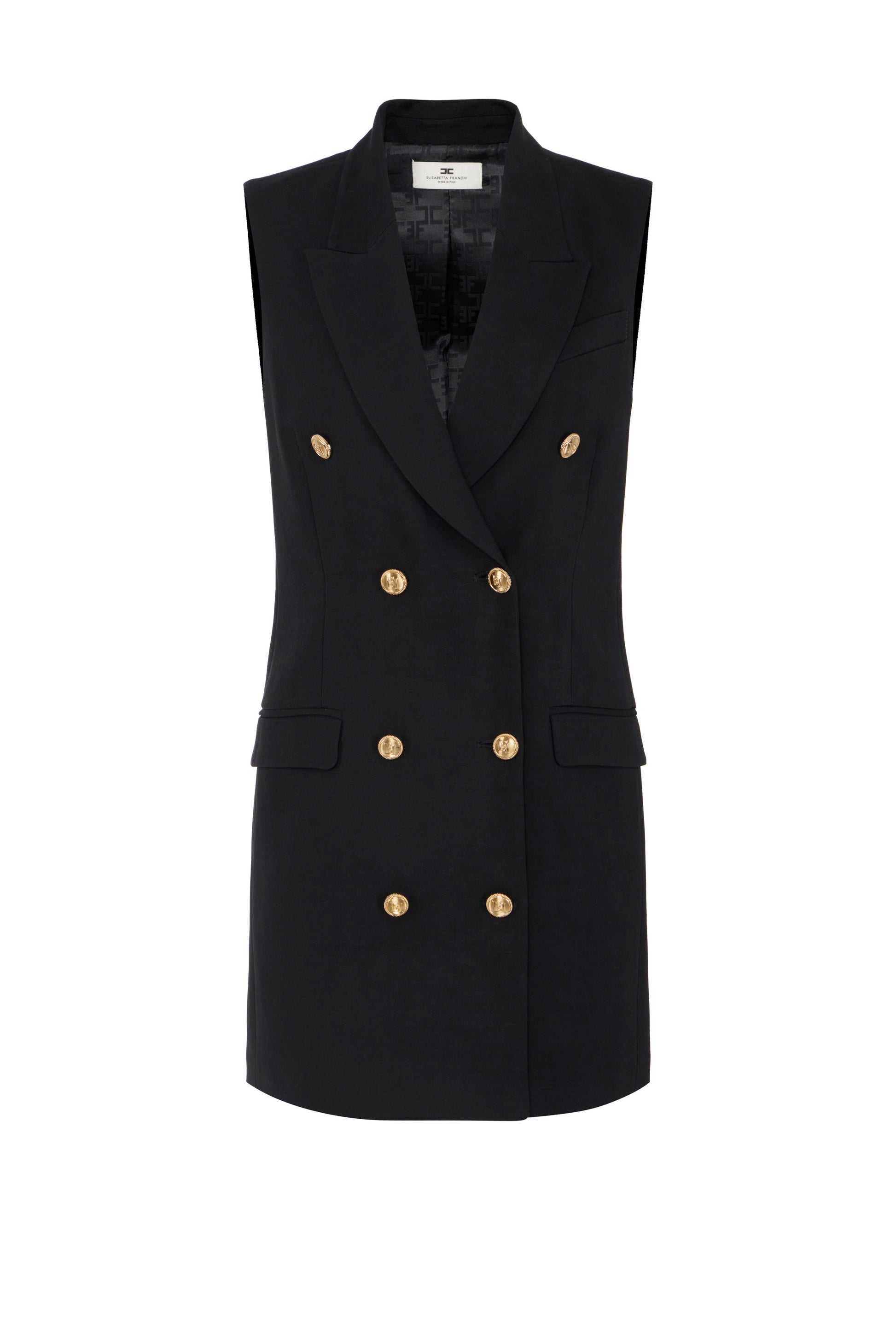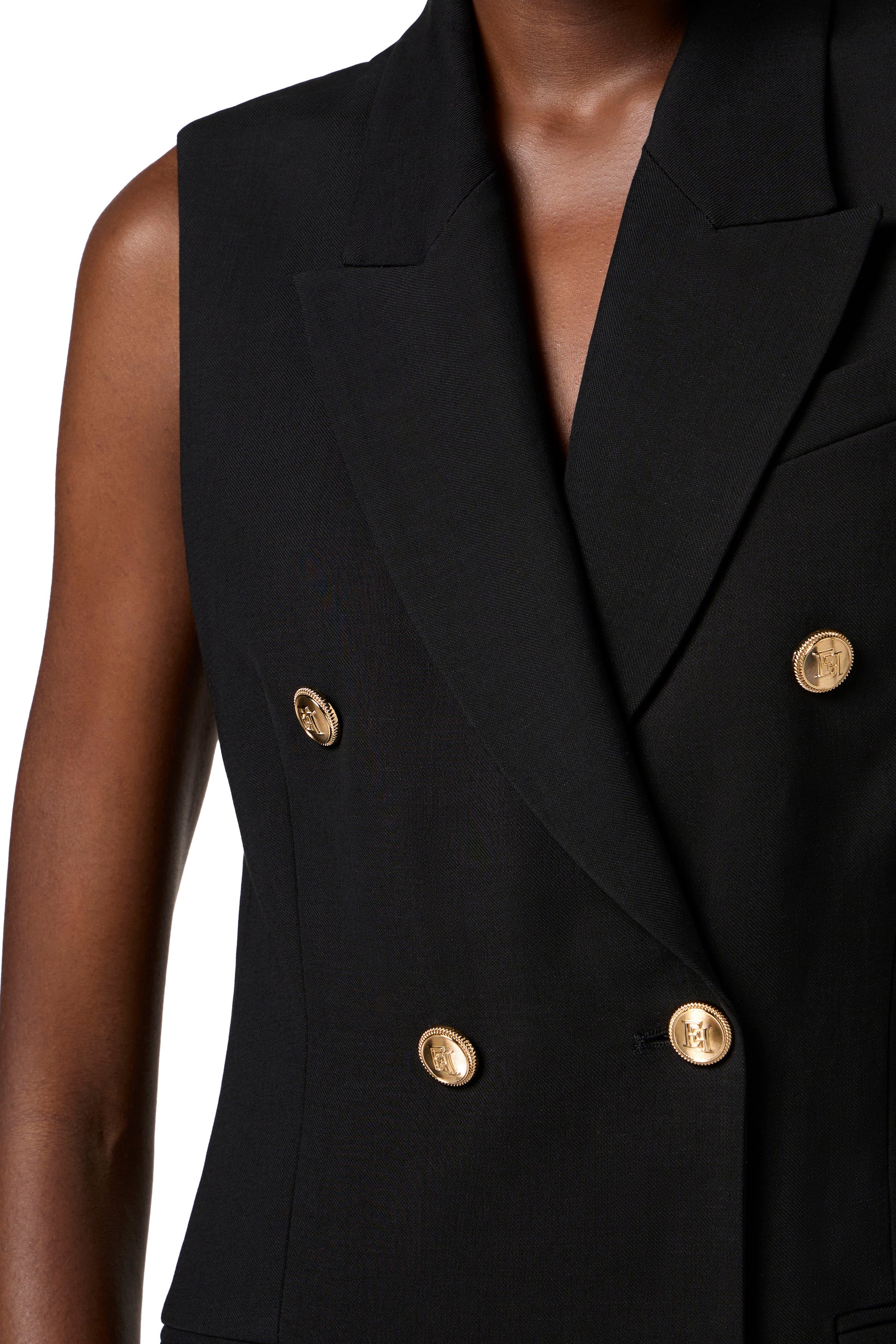 Linen-blend gabardine dress. This sleeveless dress features a double-breasted buttoning and peak lapels. Golden metal logo buttons add a precious touch to its essential style. Regular fit.
