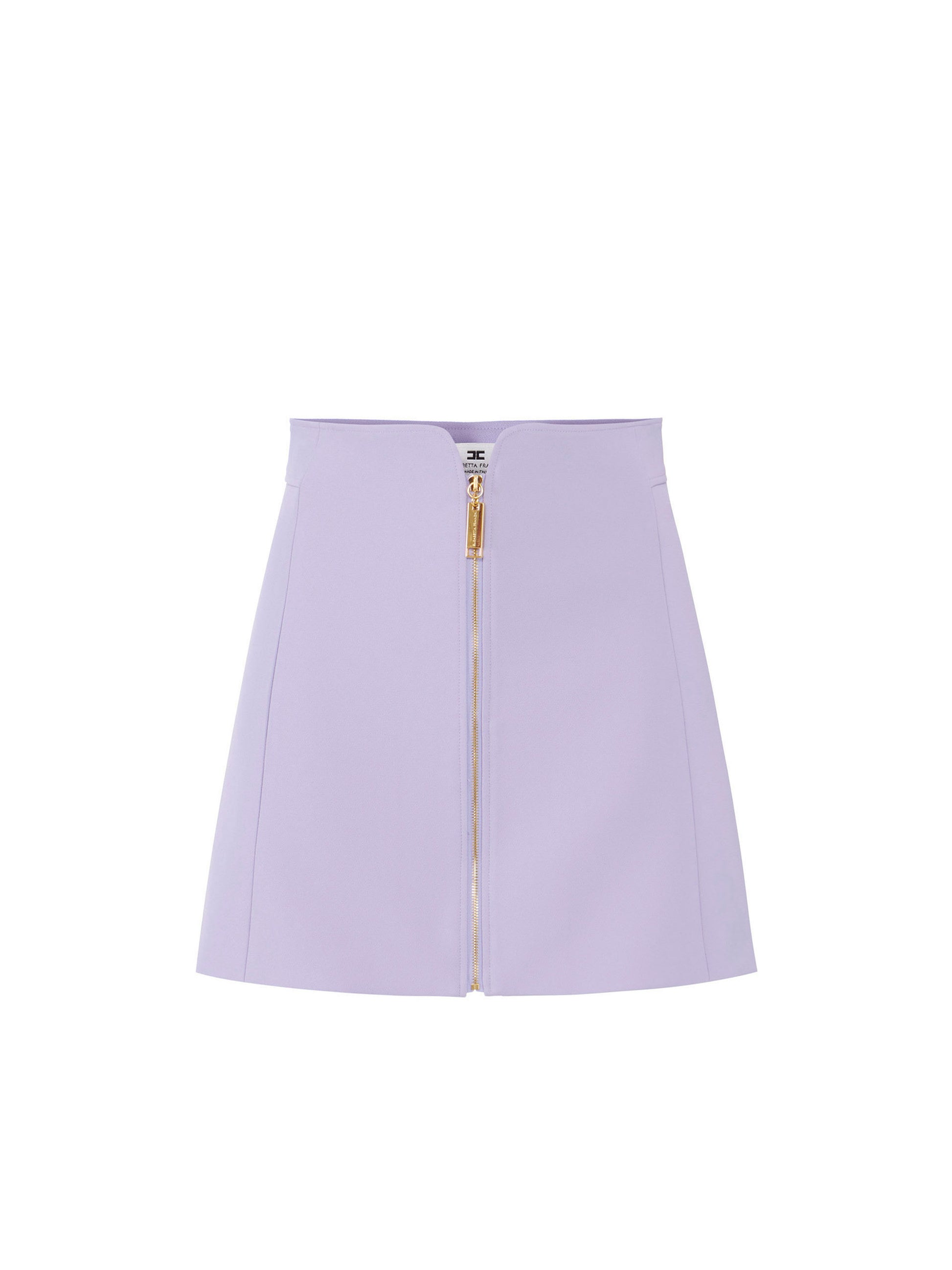 Short skirt in double layer stretch crêpe fabric. It has a low, heart-shaped waist and an A-line silhouette. It is embellished with a golden metal zip at the front and a padlock-shaped pull-tab. Regular fit.