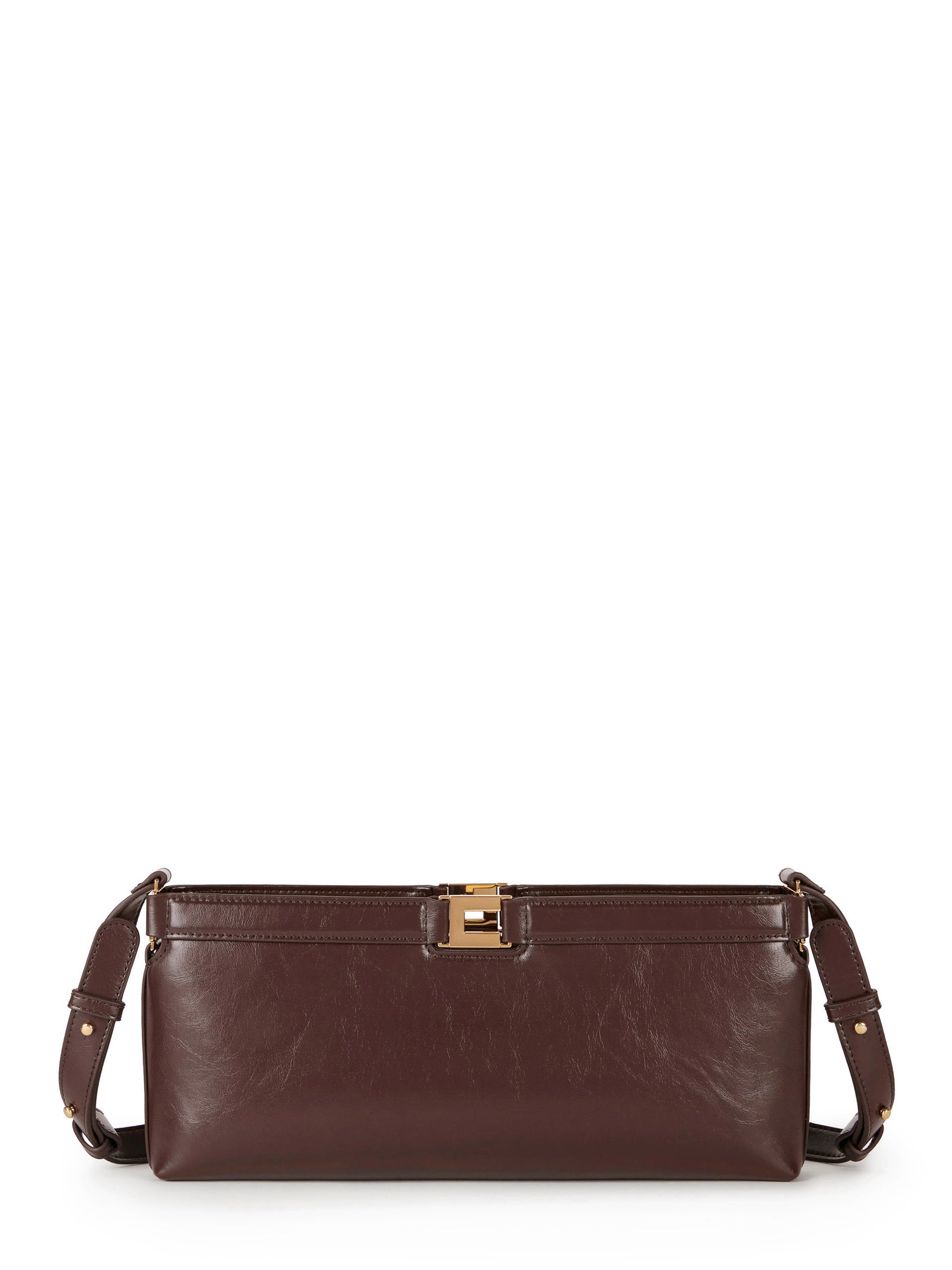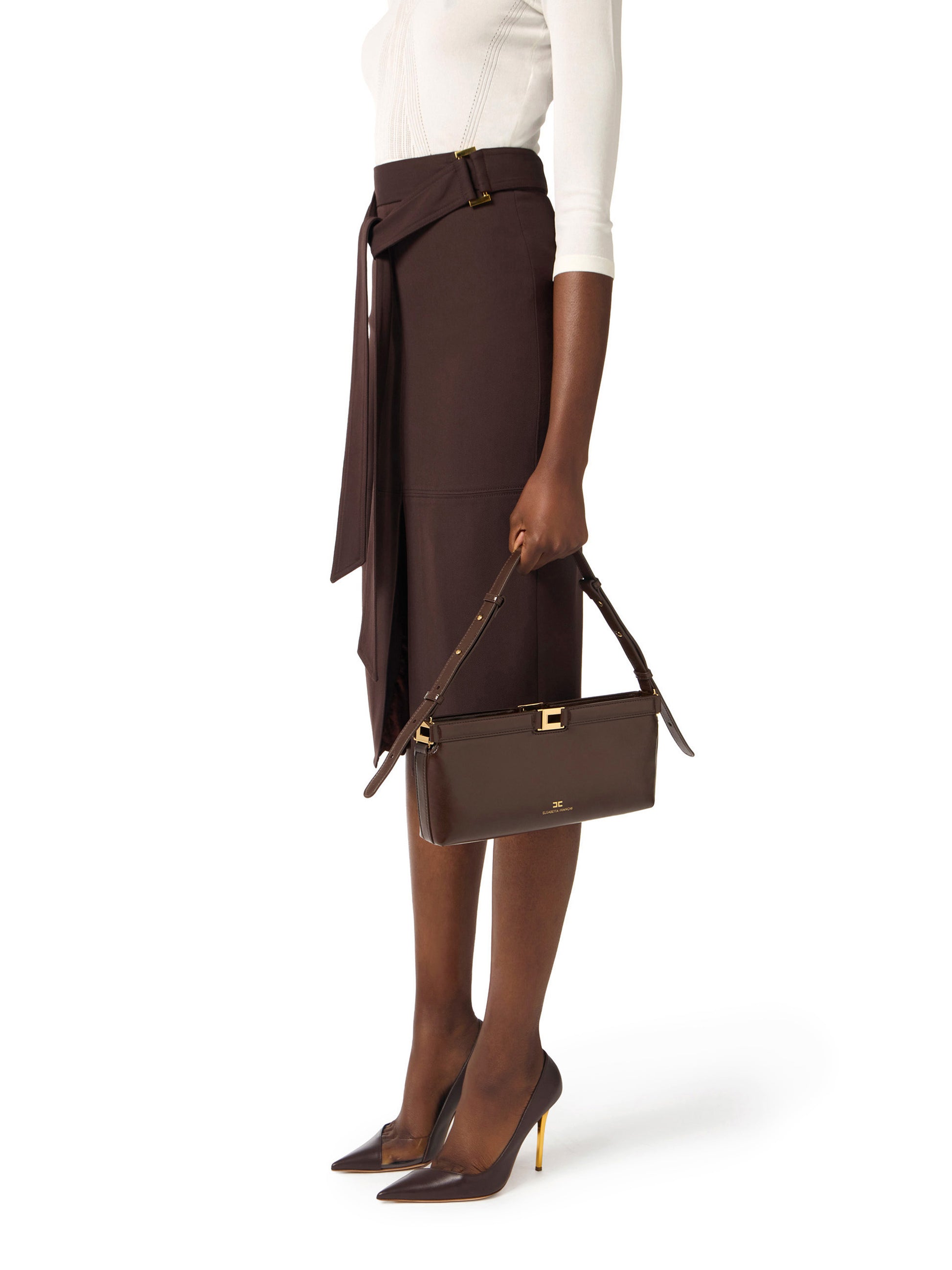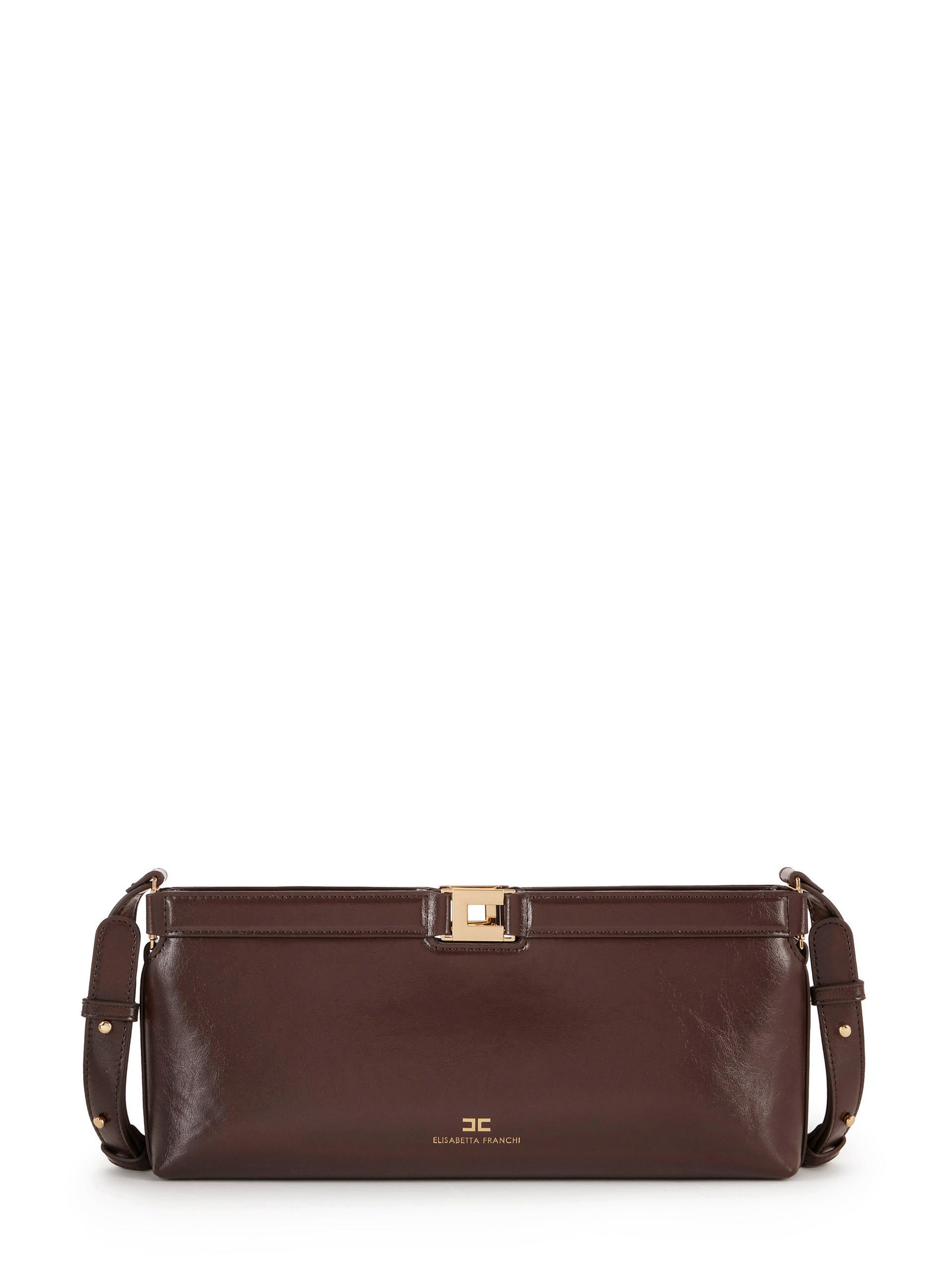 Bag made of synthetic material with naplak-effect texture. With an adjustable shoulder strap, it features an embellishing golden metal detail with logo.