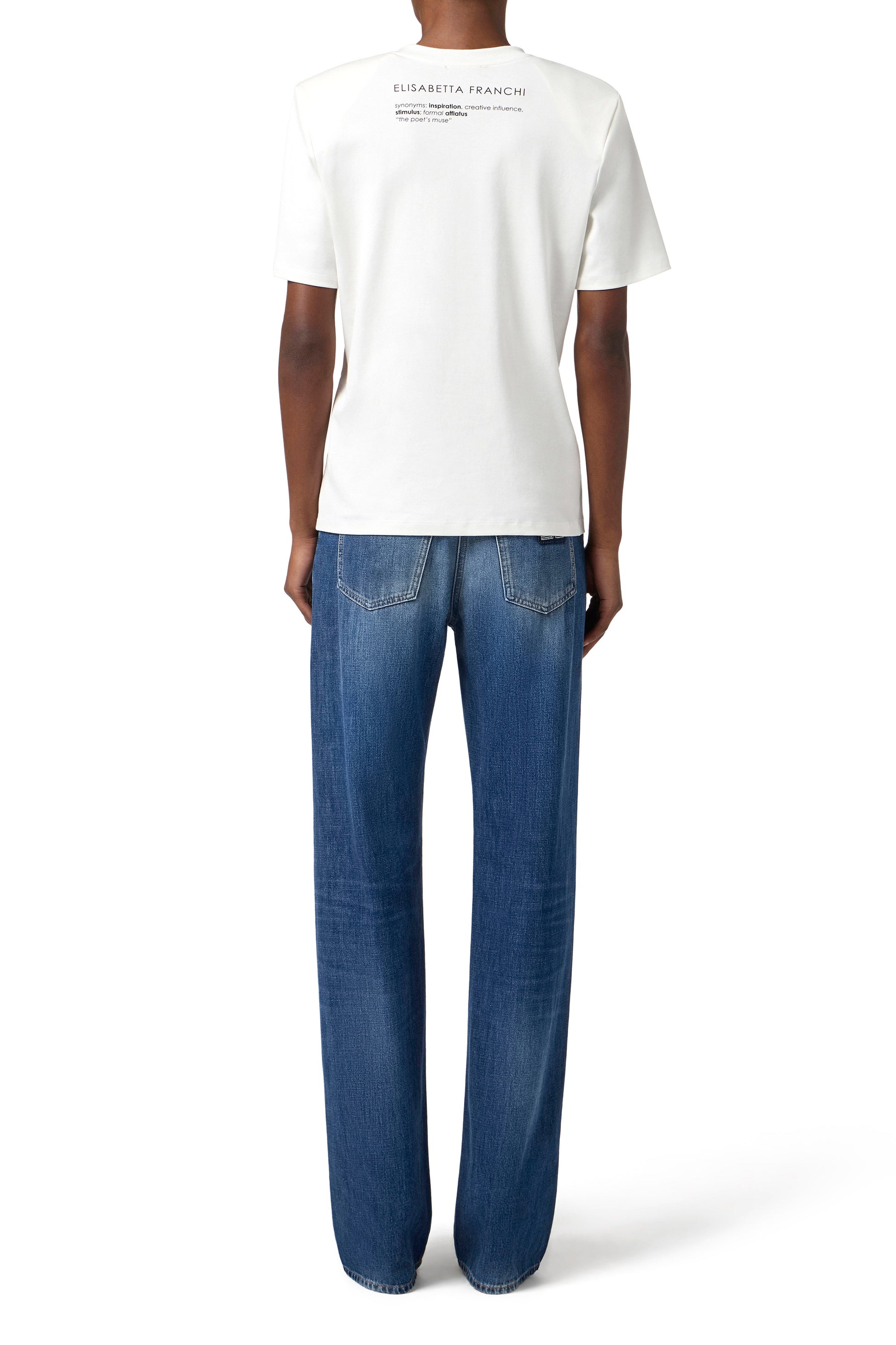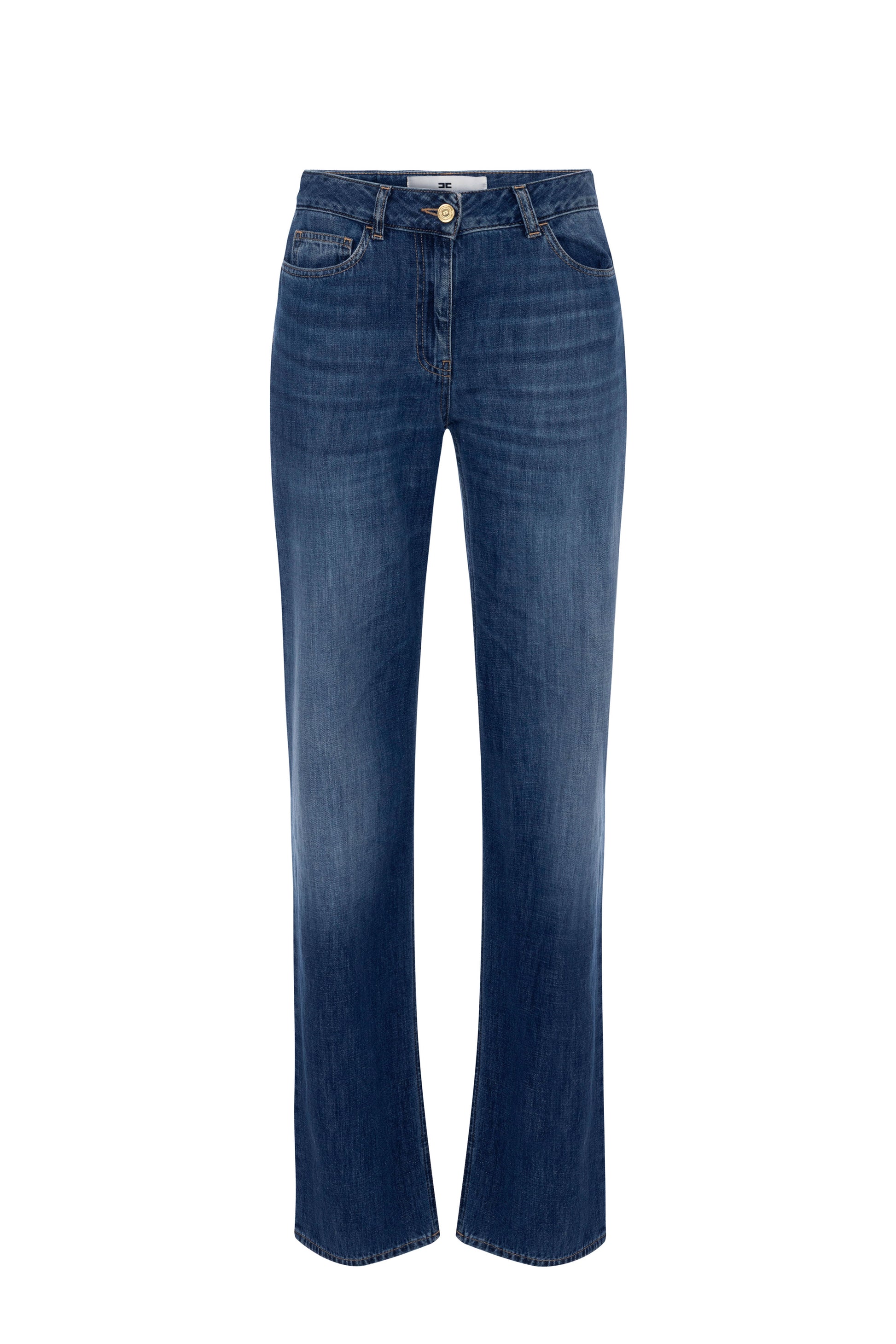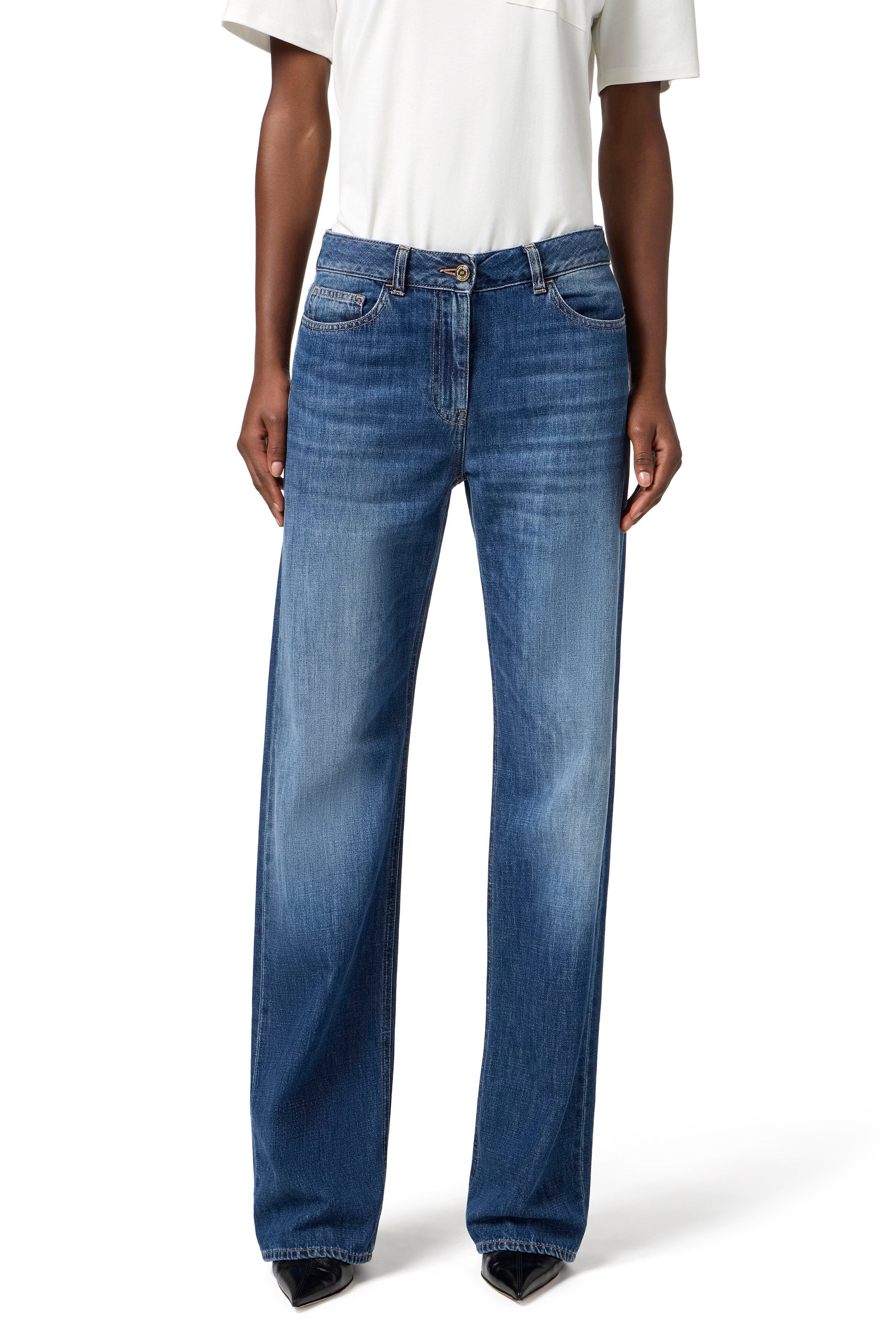 Wide-leg denim trousers with a low-rise construction and wide legs. Inspired by the timeless five-pocket designs, they feature embroidered logo details on the back pockets. Regular fit.