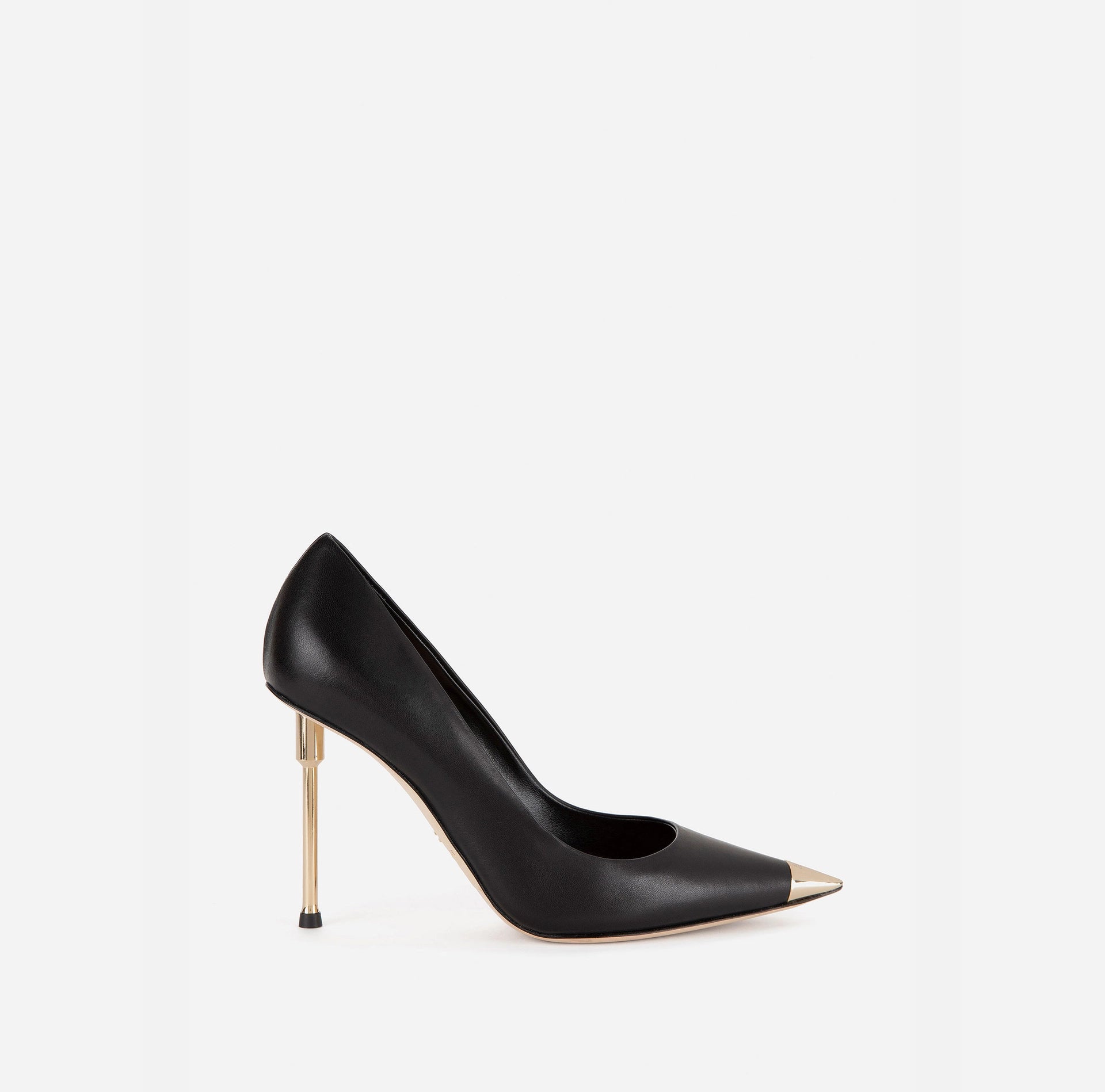 Pumps with gold plating sculptureheels h.100 mm.The upper, entirely made of nappa leather, features agold plating logoed toe cap.