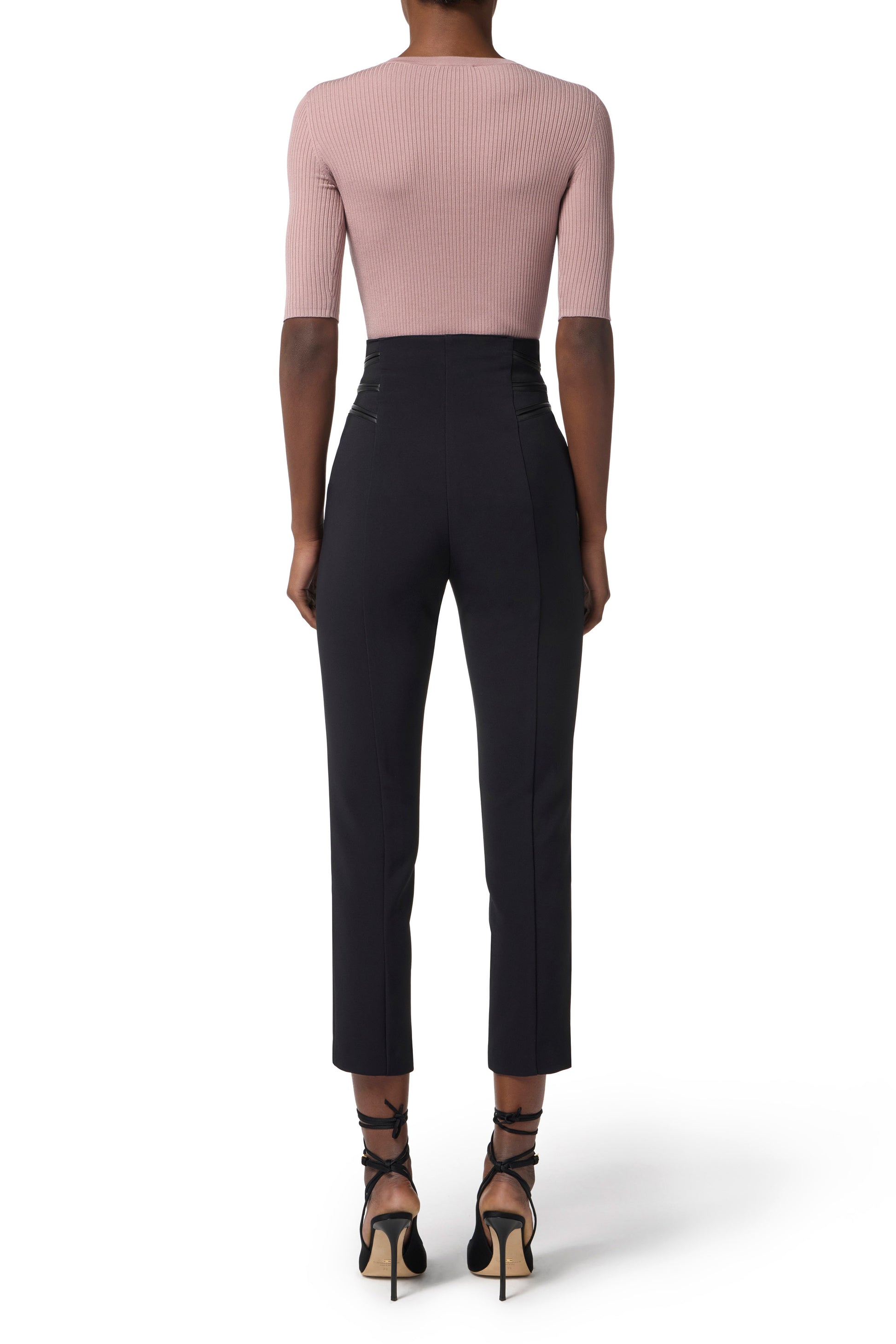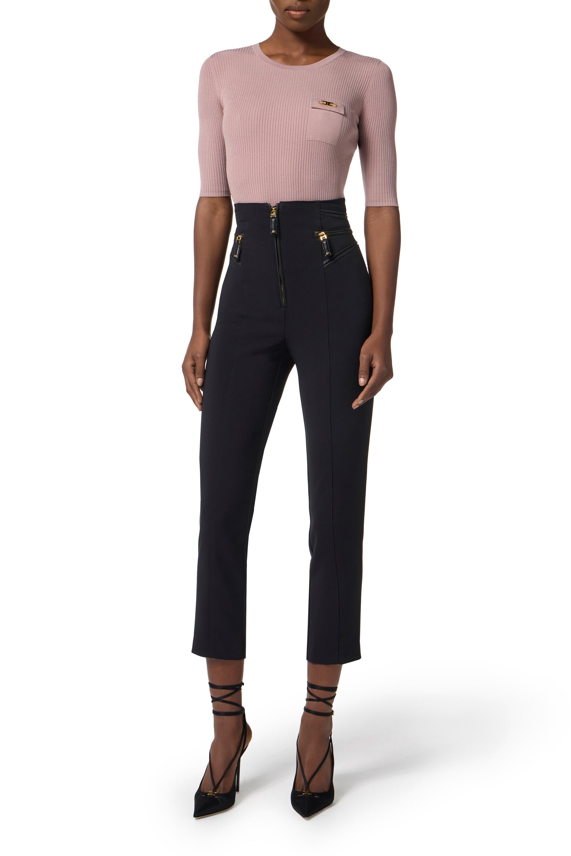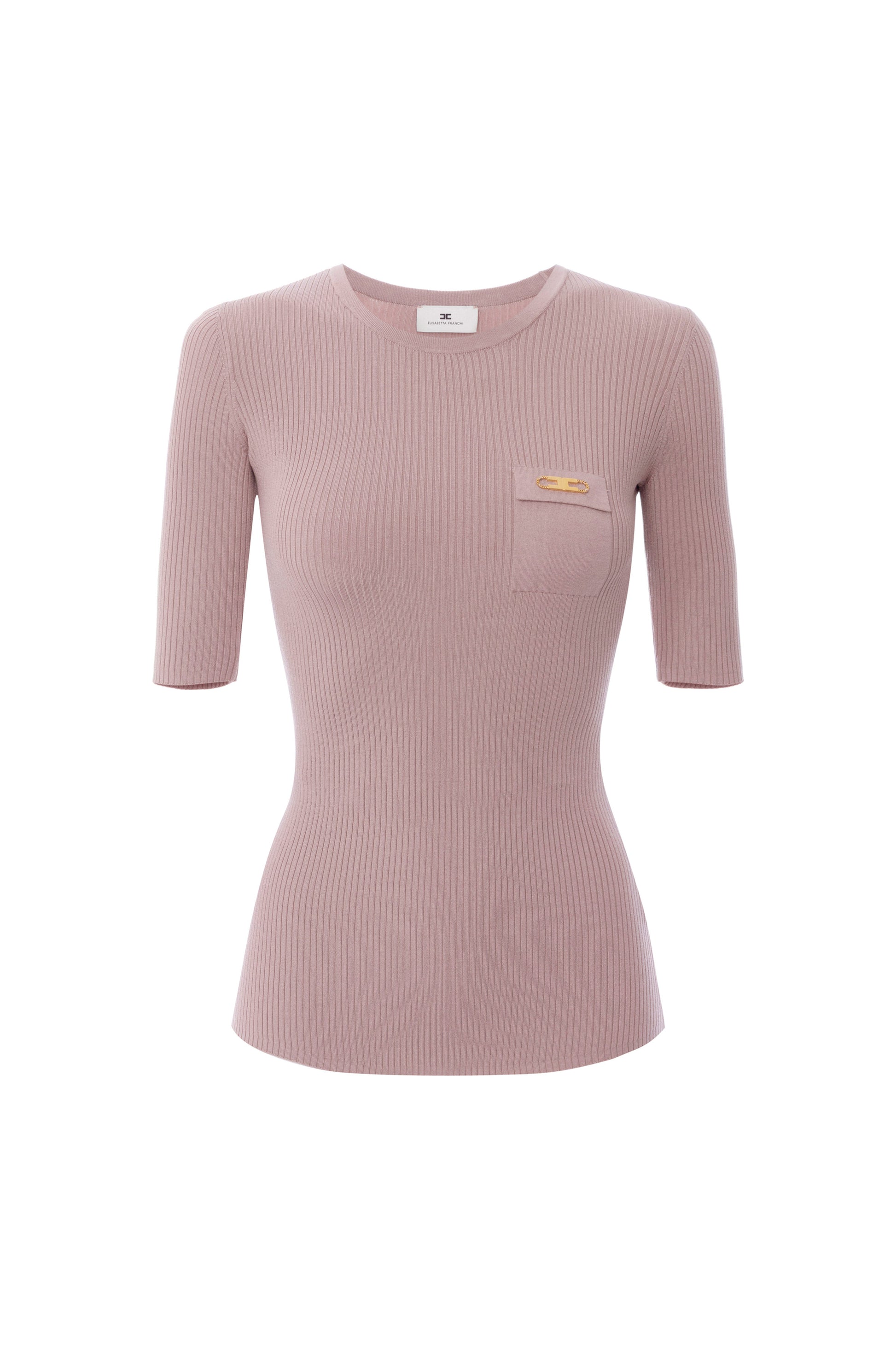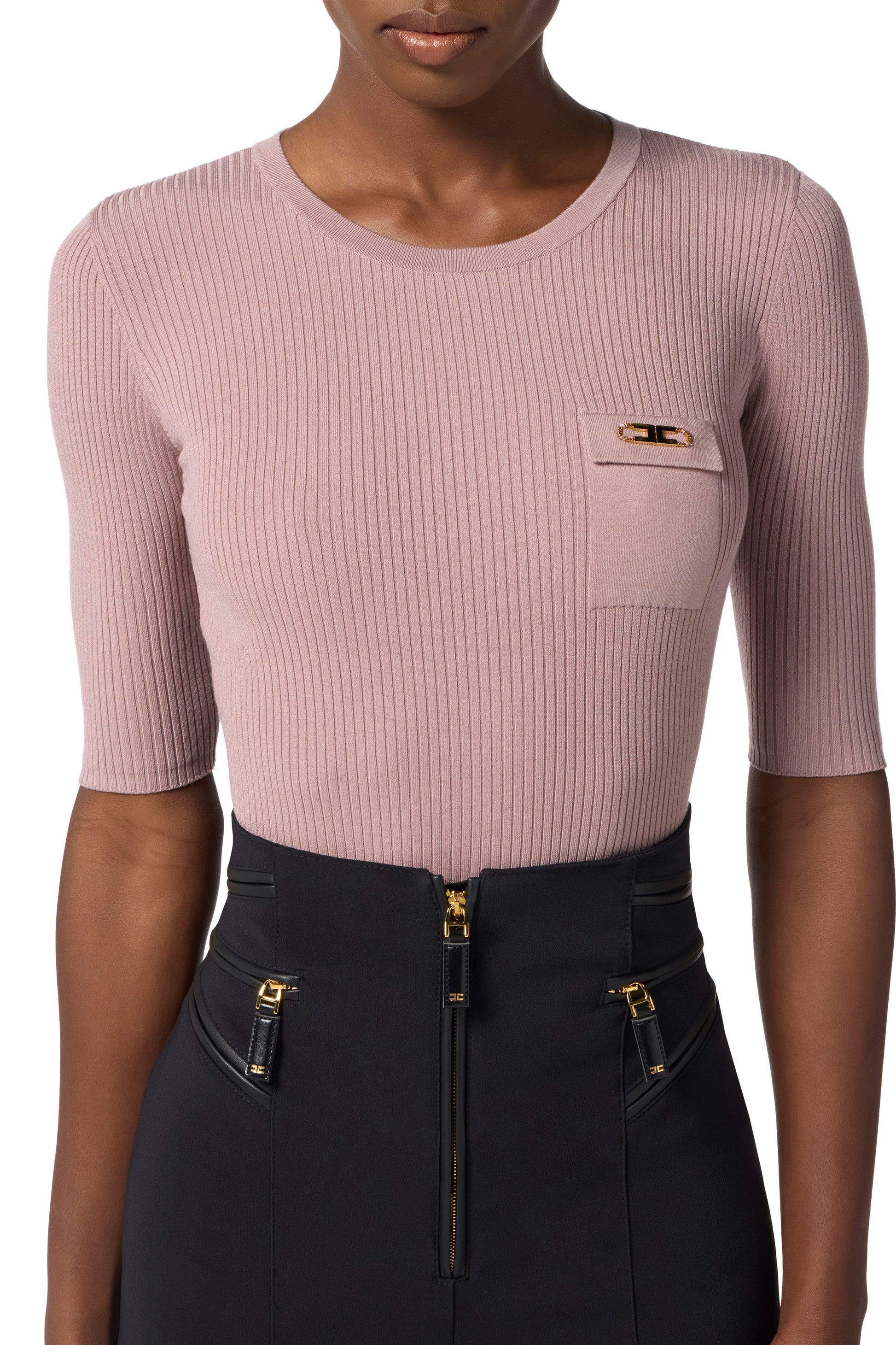 Top in ribbed knit fabric with slim fit. With a crew neck and above-the-elbow sleeves, it is personalised by the satin breast pocket with logo detail that adds a touch of light.