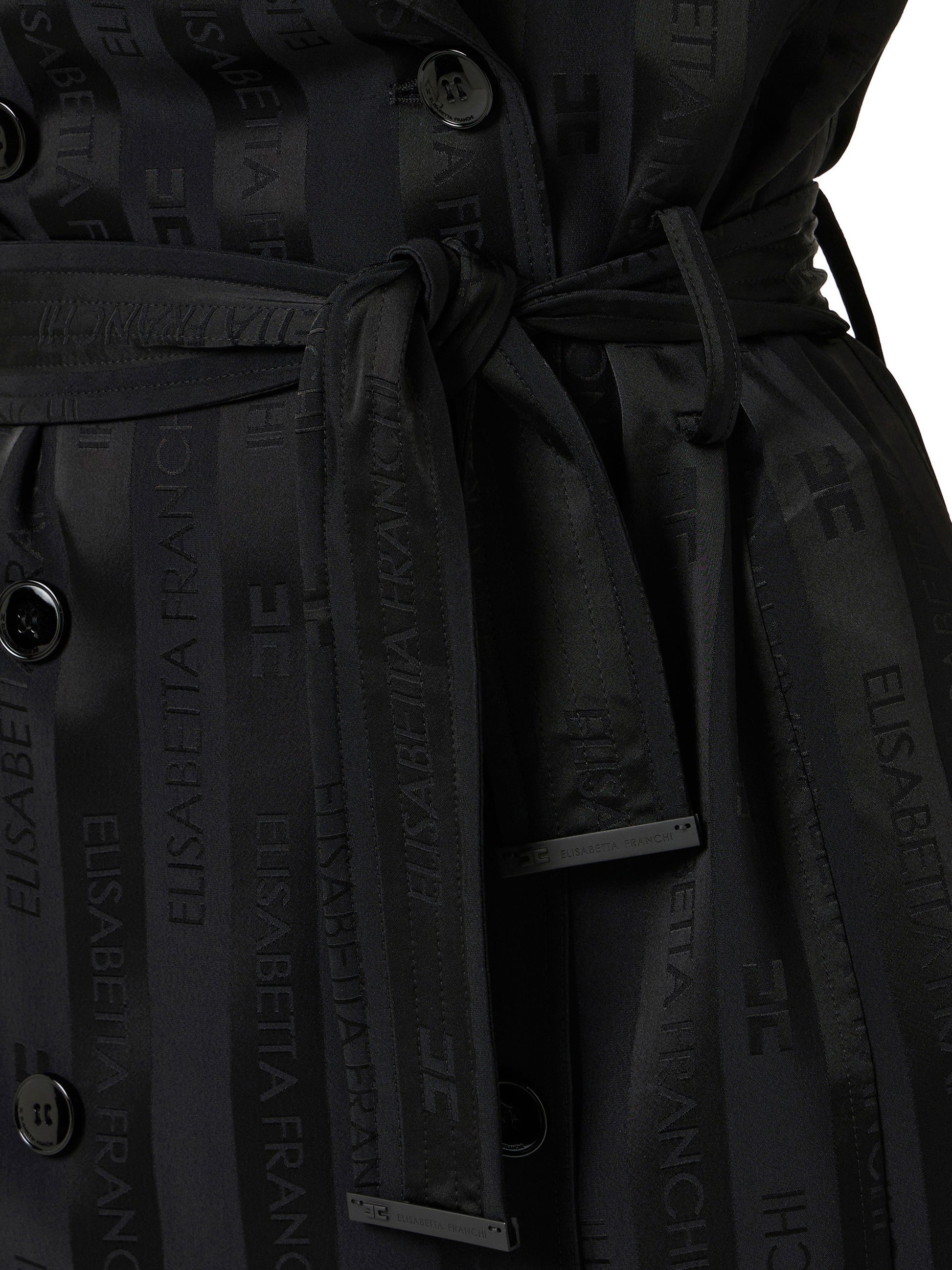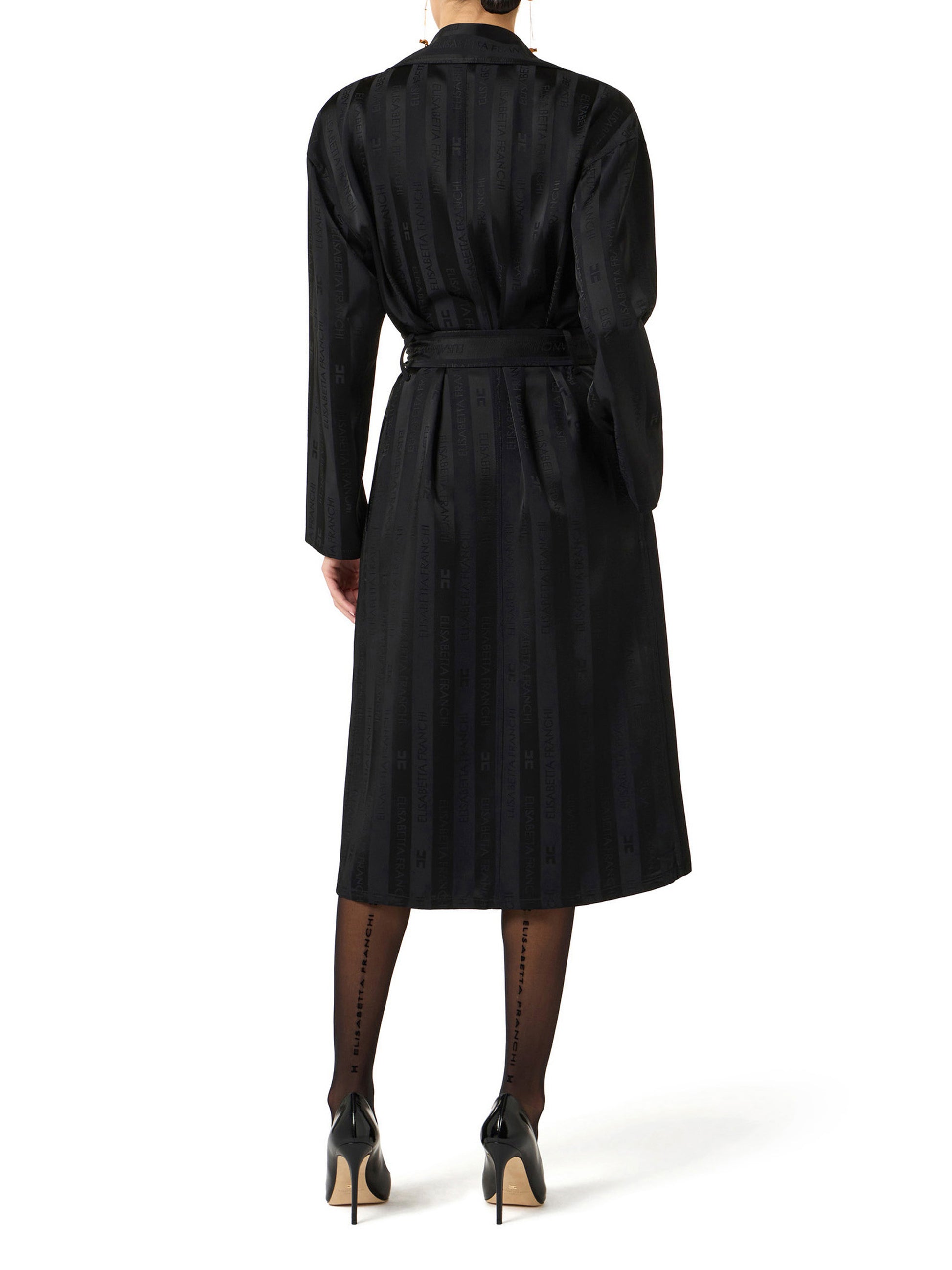 Satin trench coat with double-breasted fastening, lapels and belt at the waist. The jacquard weave creates a striped pattern that alternates between shiny and matte textures, creating a visual and textural rhythm. Regular fit.