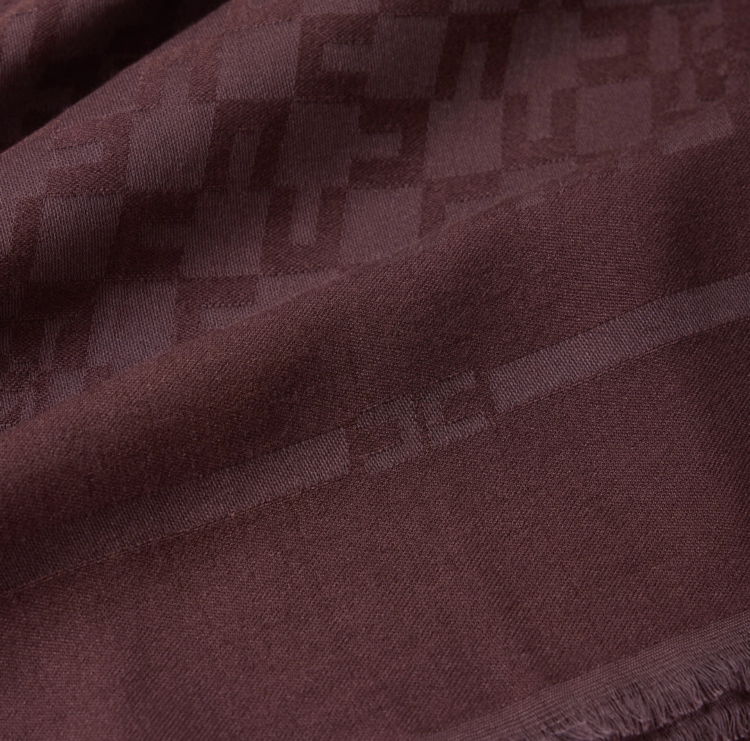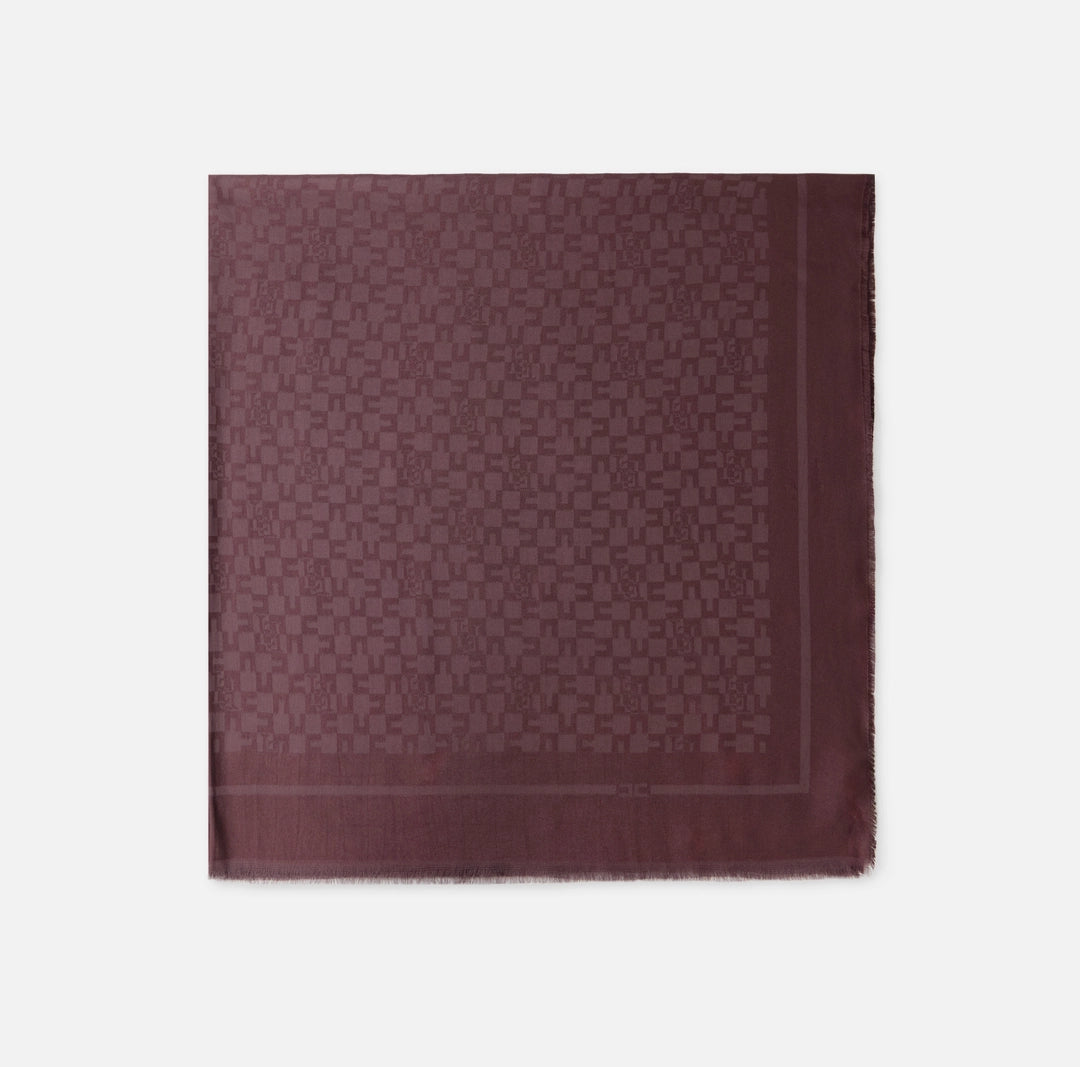 Square scarf featuring an all-over logo pattern. Solid colour and matching frame with logo and frayed edges providing movement.