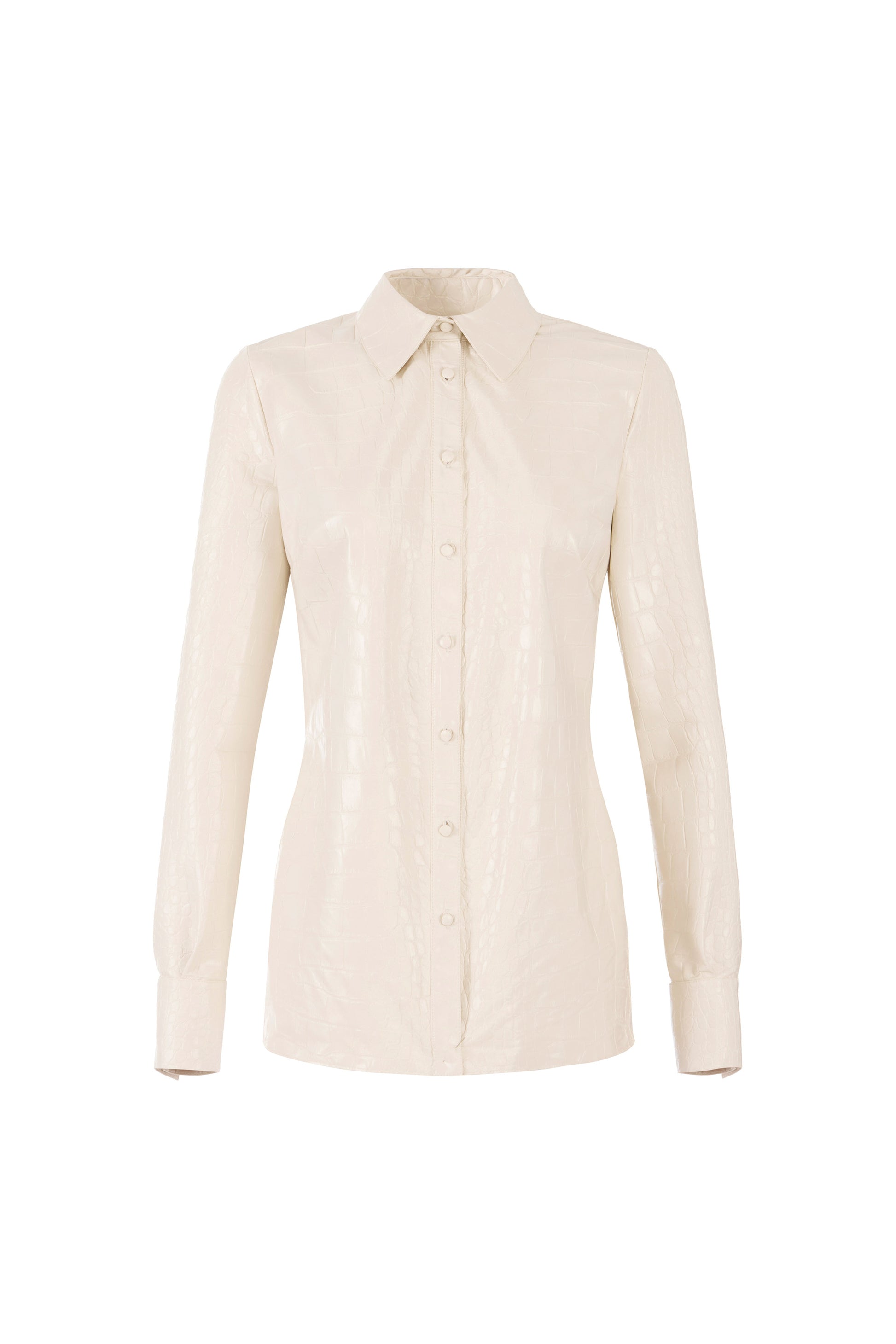 Shirt made in leather-effect synthetic material. With classic collar and long sleeves, it stands apart for its texture with crocodile print that lends character to the garment. Regular fit.