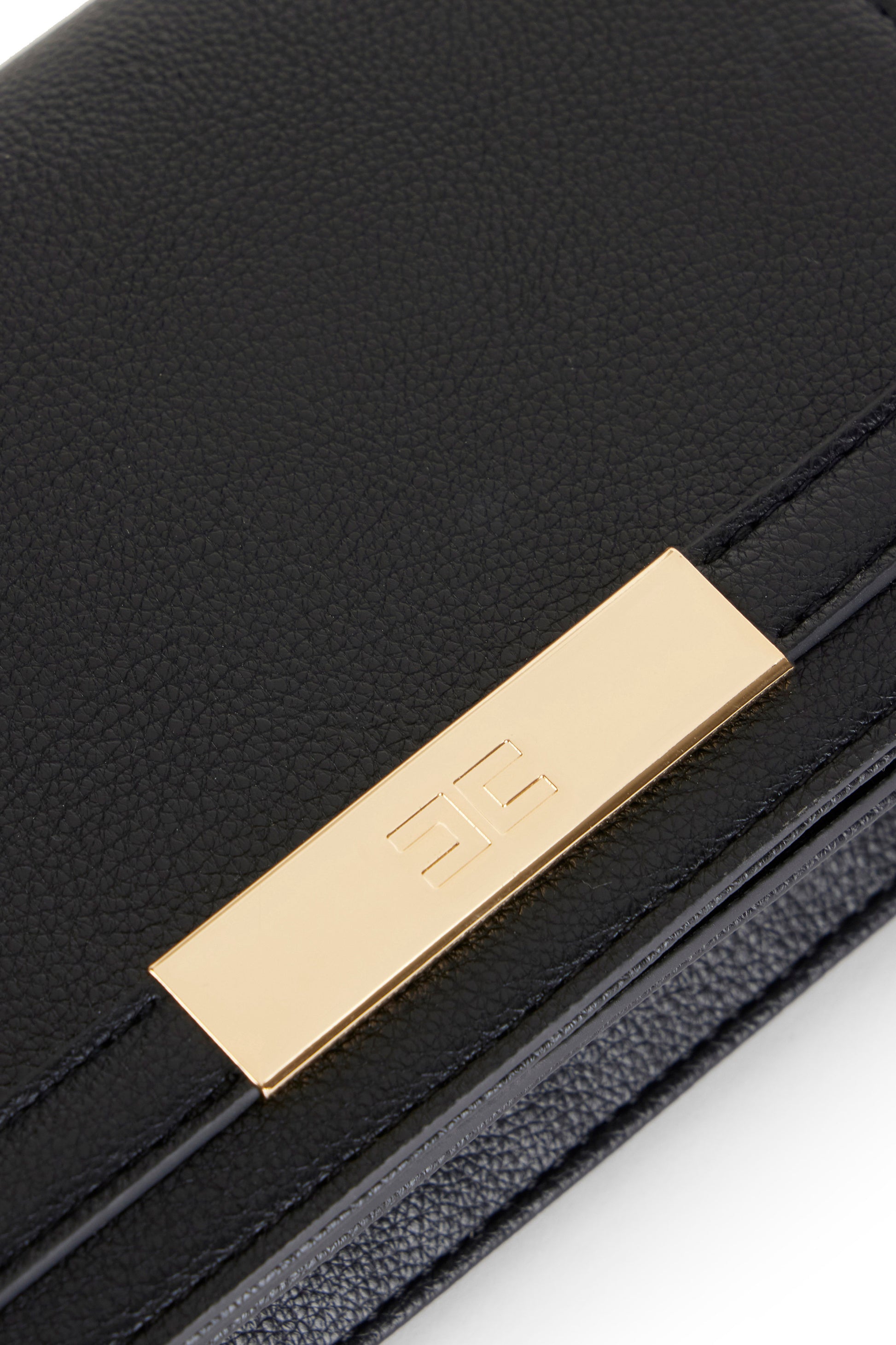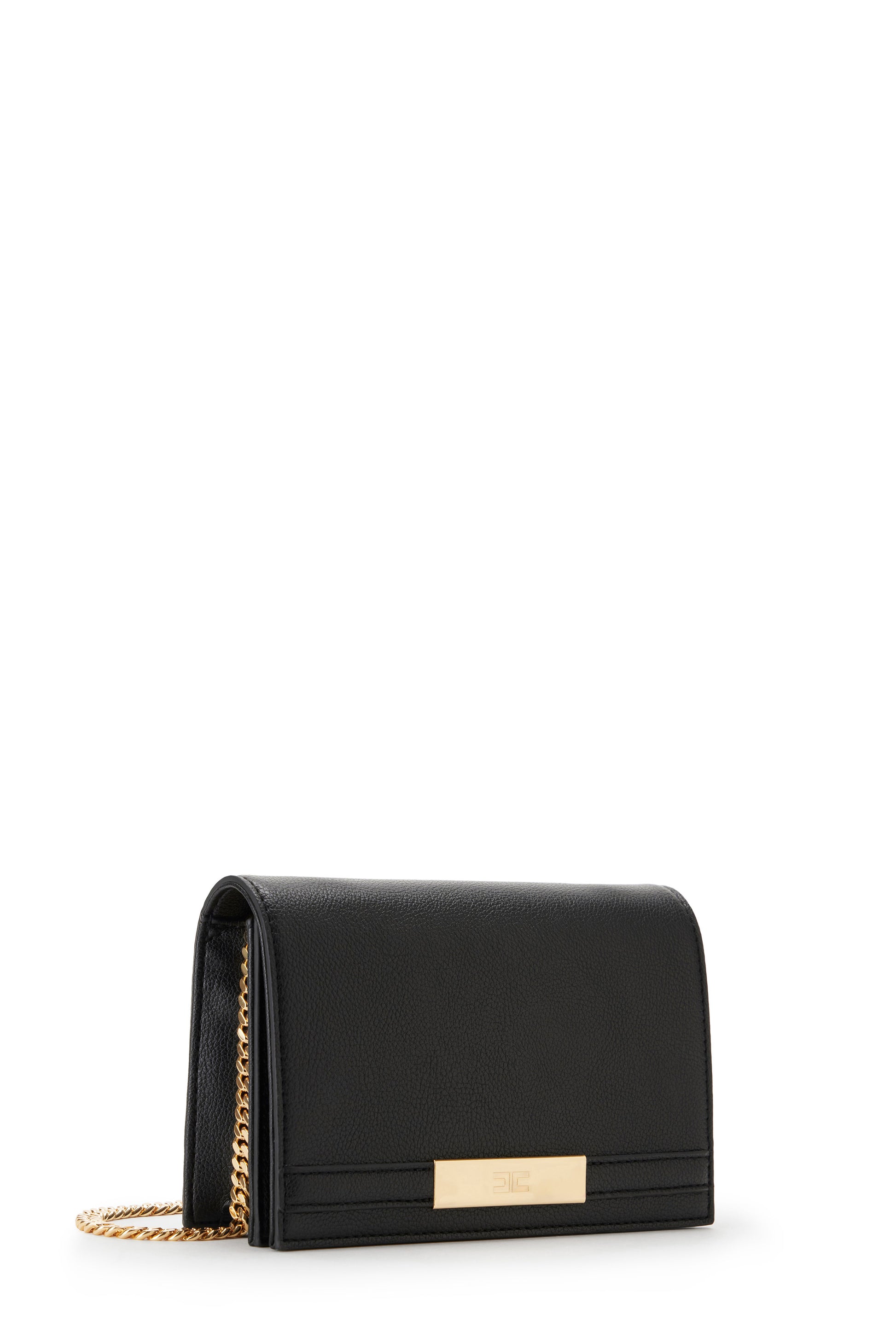 Shoulder bag in synthetic leather-effect material. With a compact and minimalist shape, it features a shoulder strap with a golden metal groumette chain and strap. It is embellished by the plaque with logo that adds a final touch of light.