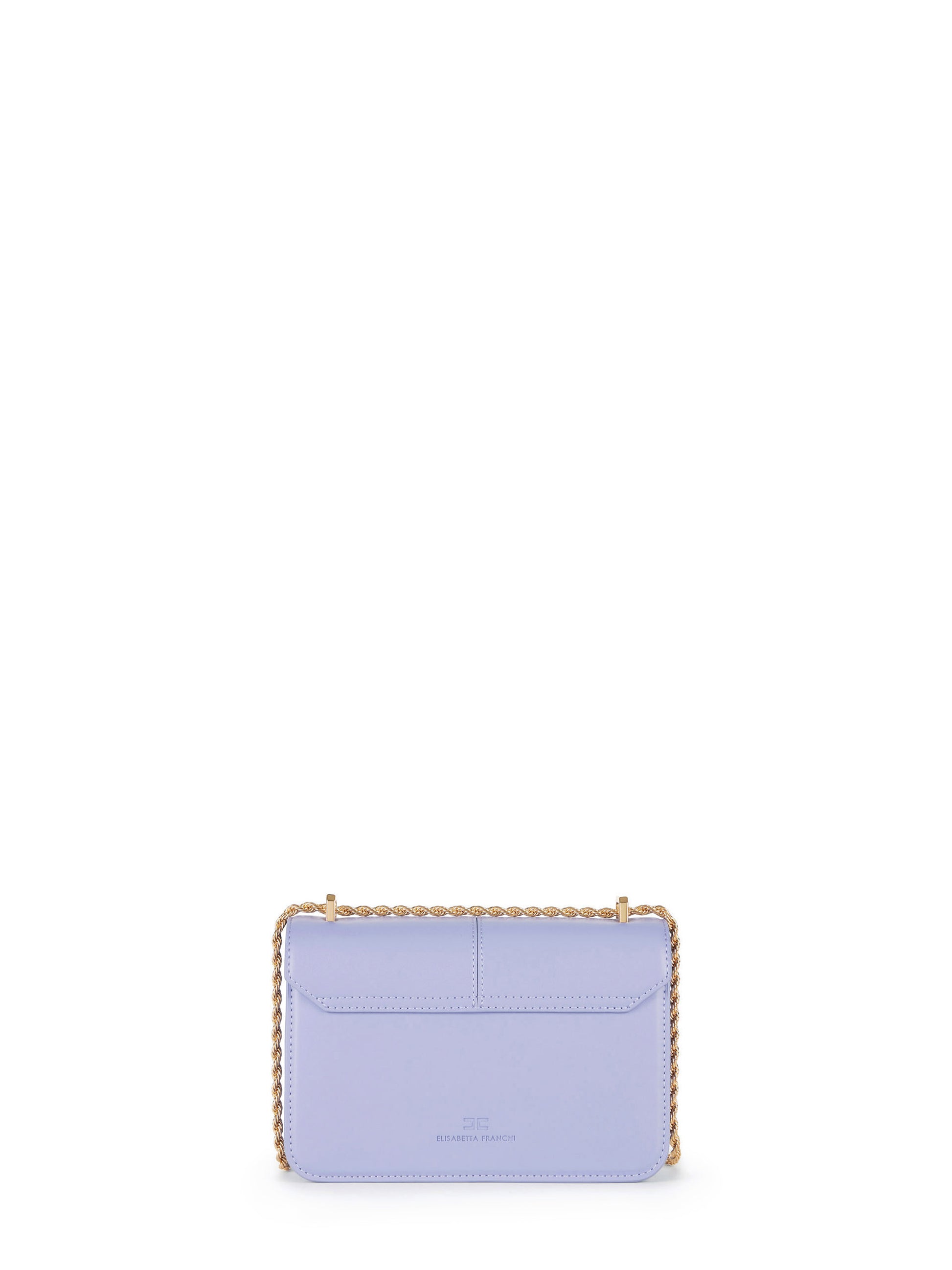 Bag with a linear shape. It has a double chain shoulder strap with logo on tubular detail. The golden metal logo plaque, enamelled on the inside, completes the accessory.
