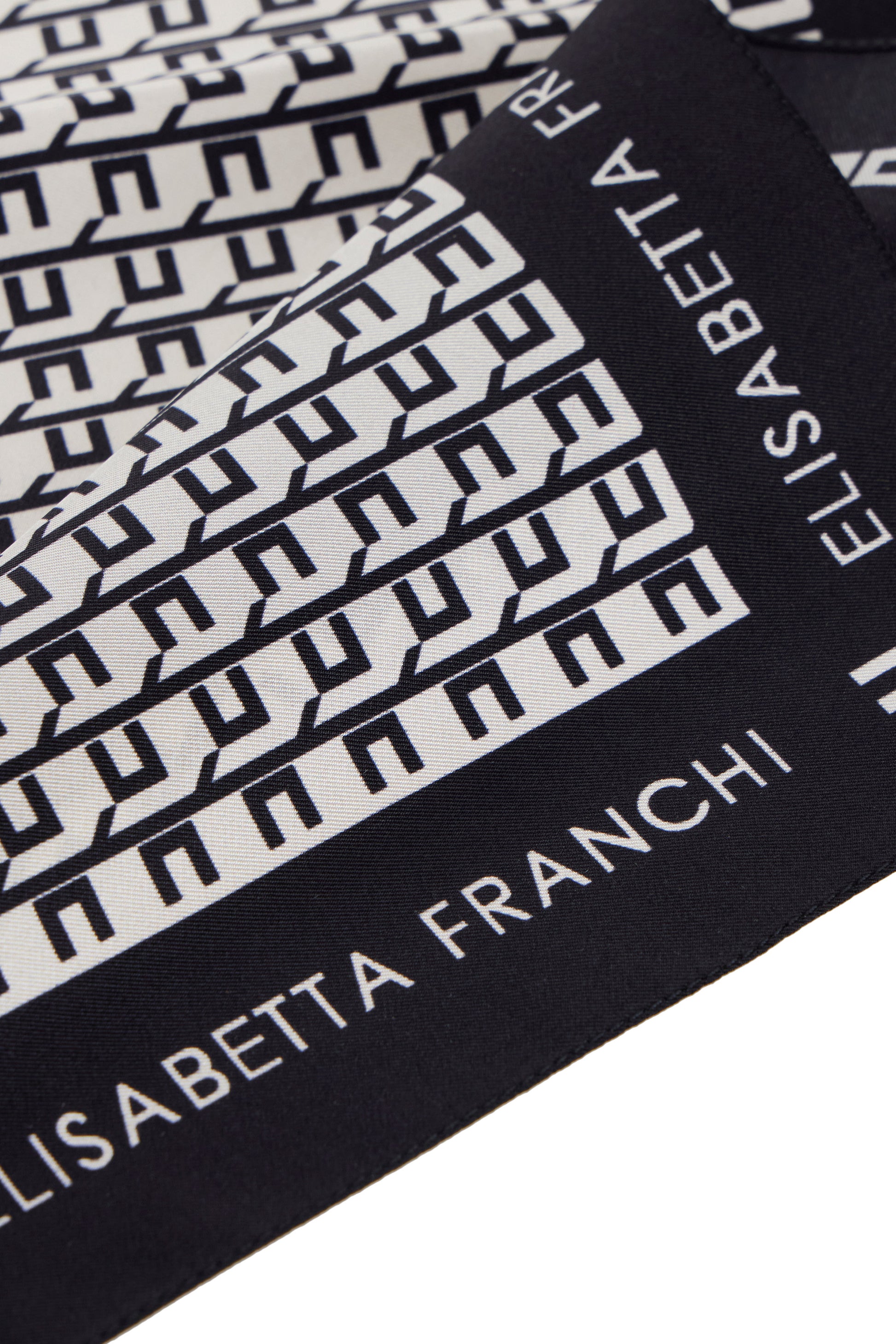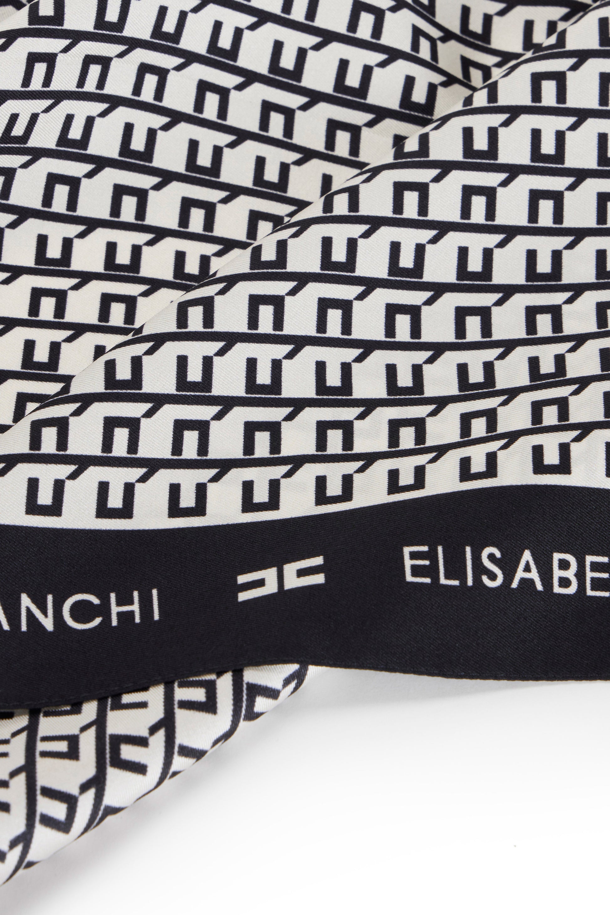 Square silk twill foulard scarf with all-over print. The solid-coloured frame with logo adds definition.
