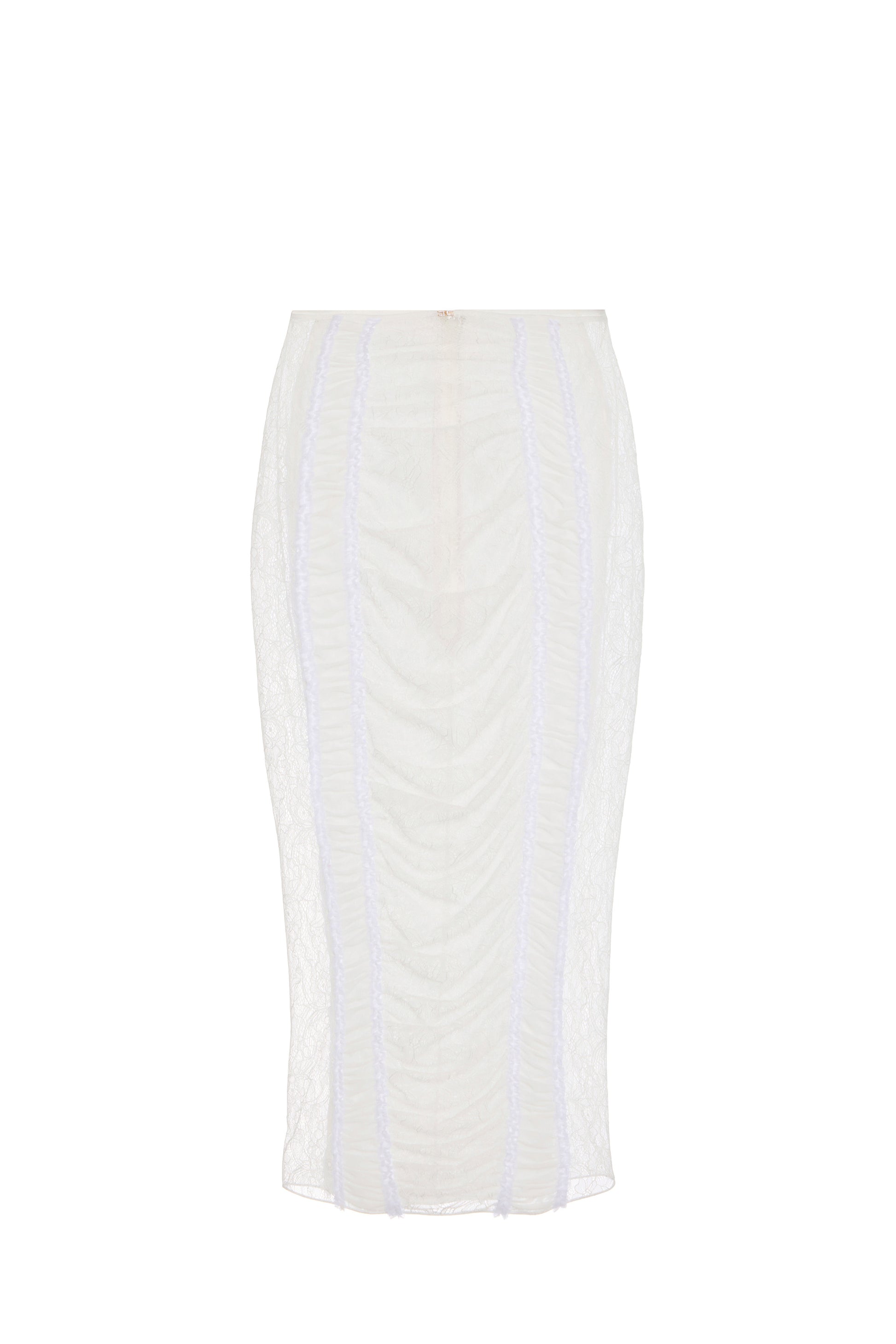 Skirt in tulle fabric with a stretch motif. It features stylish floral lace inserts that enhance the front and the sides to create a most sensual design. It is completed by the jewel detail with logo and rhinestones at the waist. Slim fit.