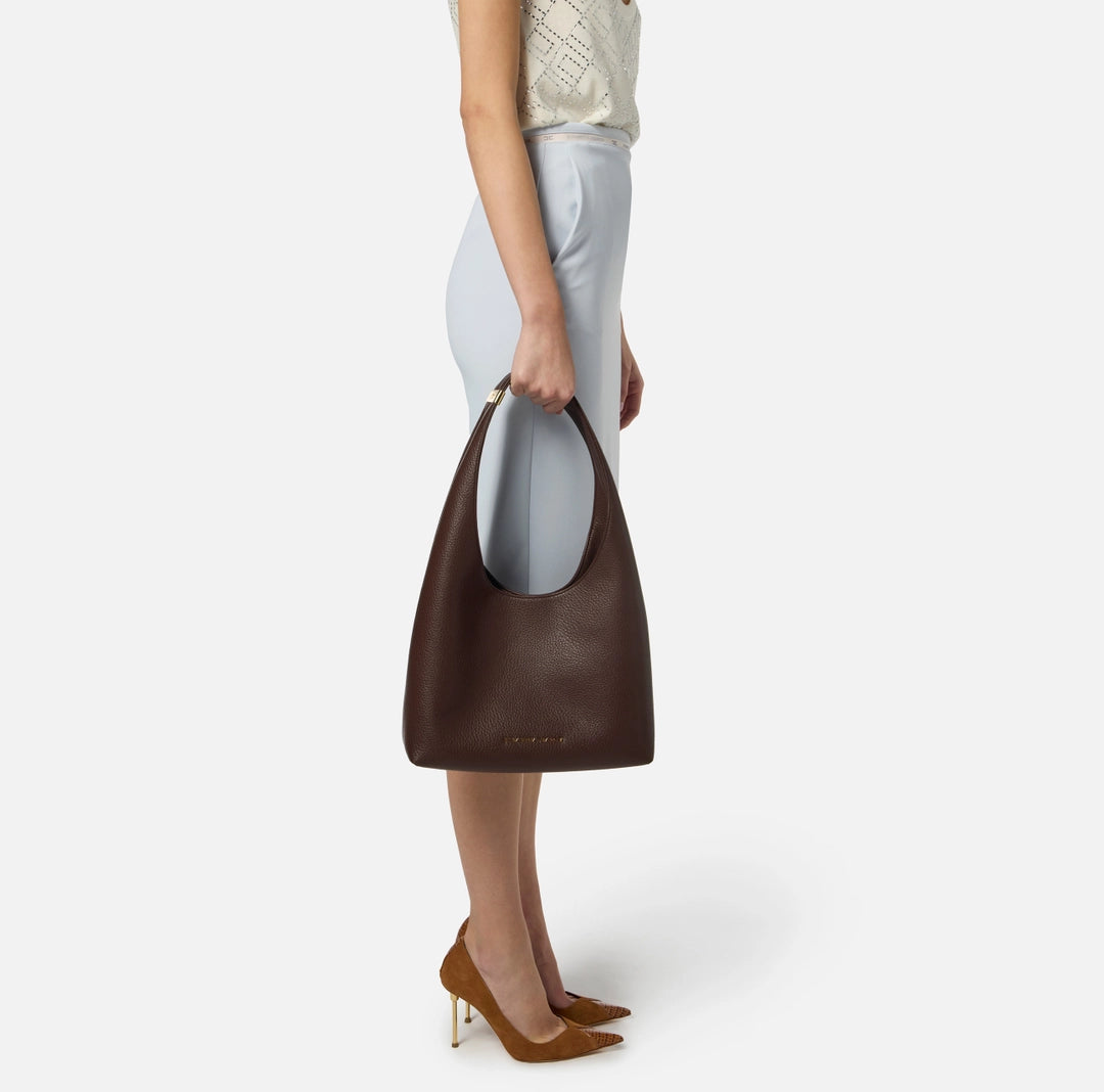 Small hobo bag made of leather-effect synthetic material. Personalized with a front logo, it features a gold metal logo plaque on the handle for a light touch.