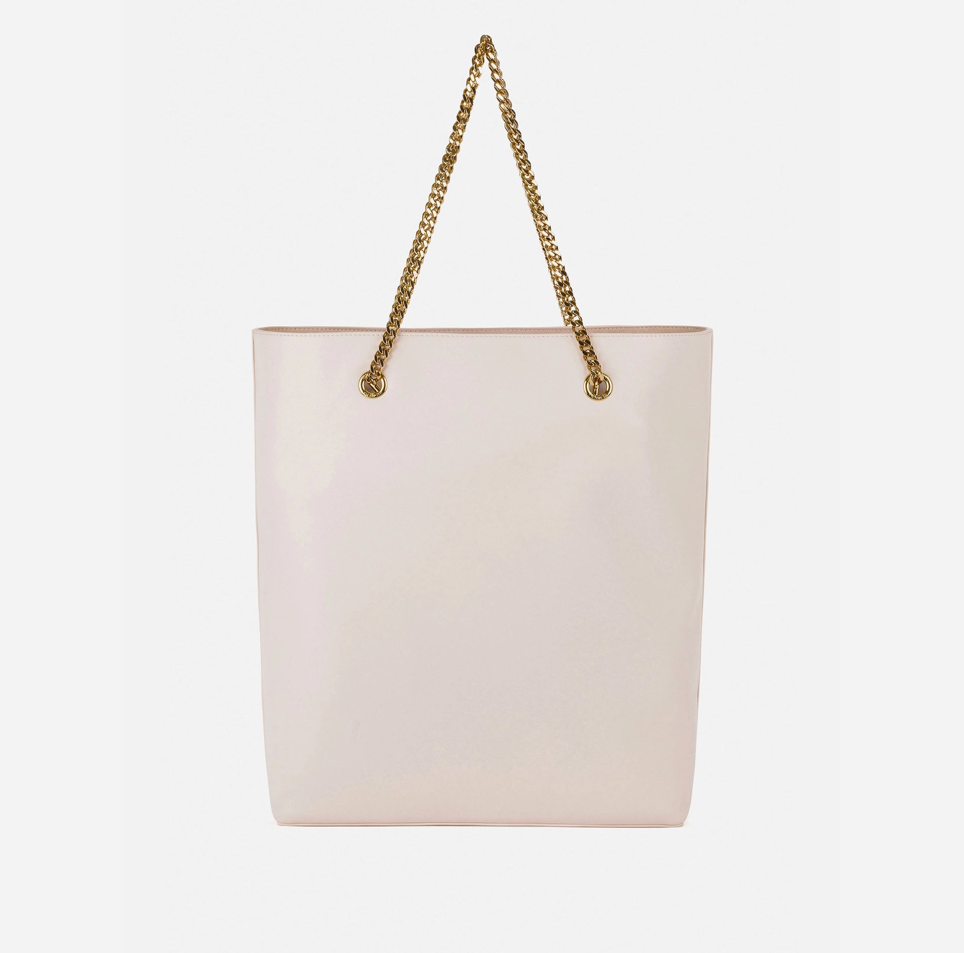 A practical shopper bag with an irresistible design. The aged gold chain makes this bag unique and illuminates it. Choose this bag if you want to carry your essentials always with you, with femininity!