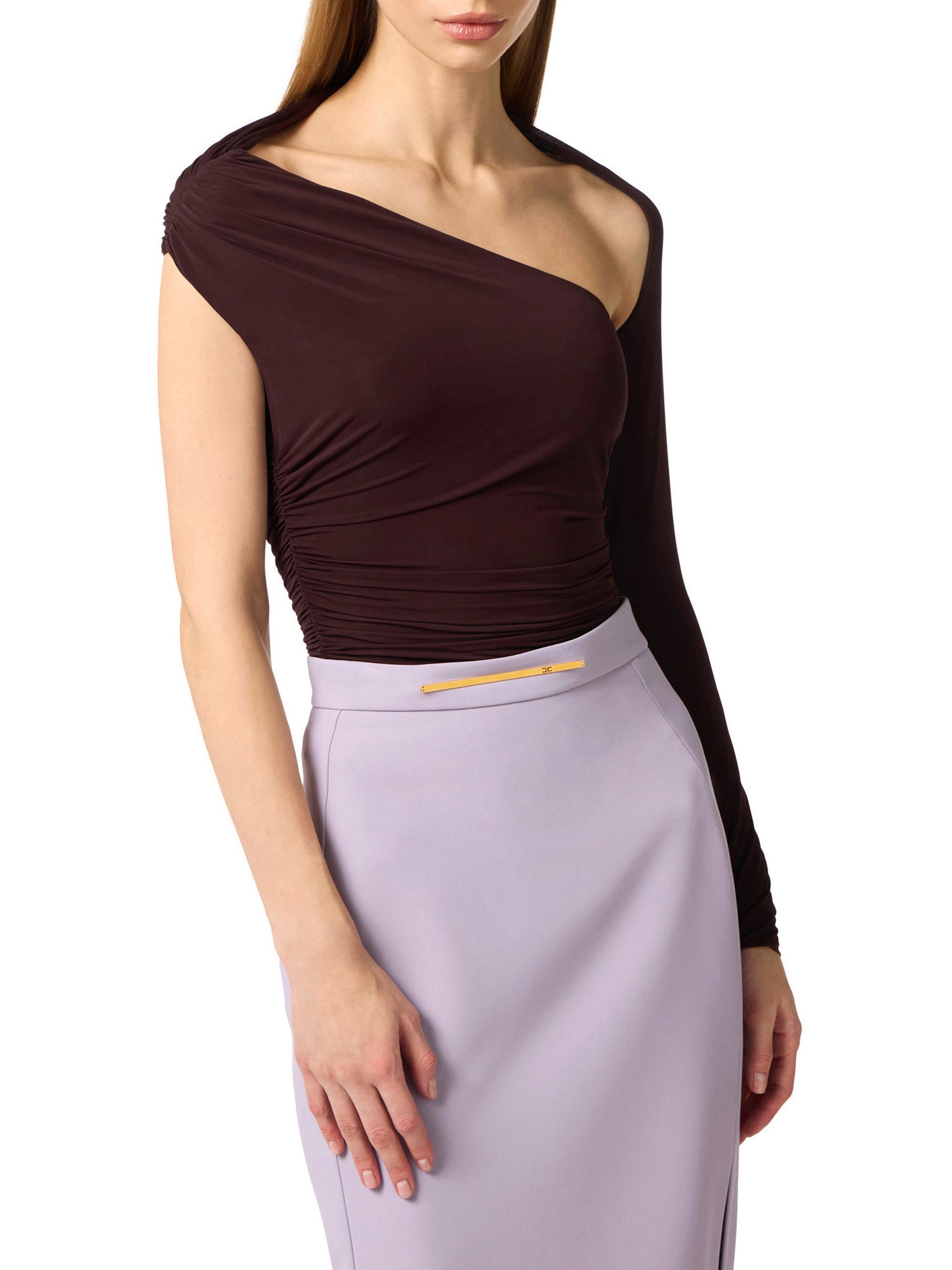 Top in jersey fabric with one-shoulder design and long sleeves. With a minimalist silhouette, it features a logo detail at the bottom. Slim fit.