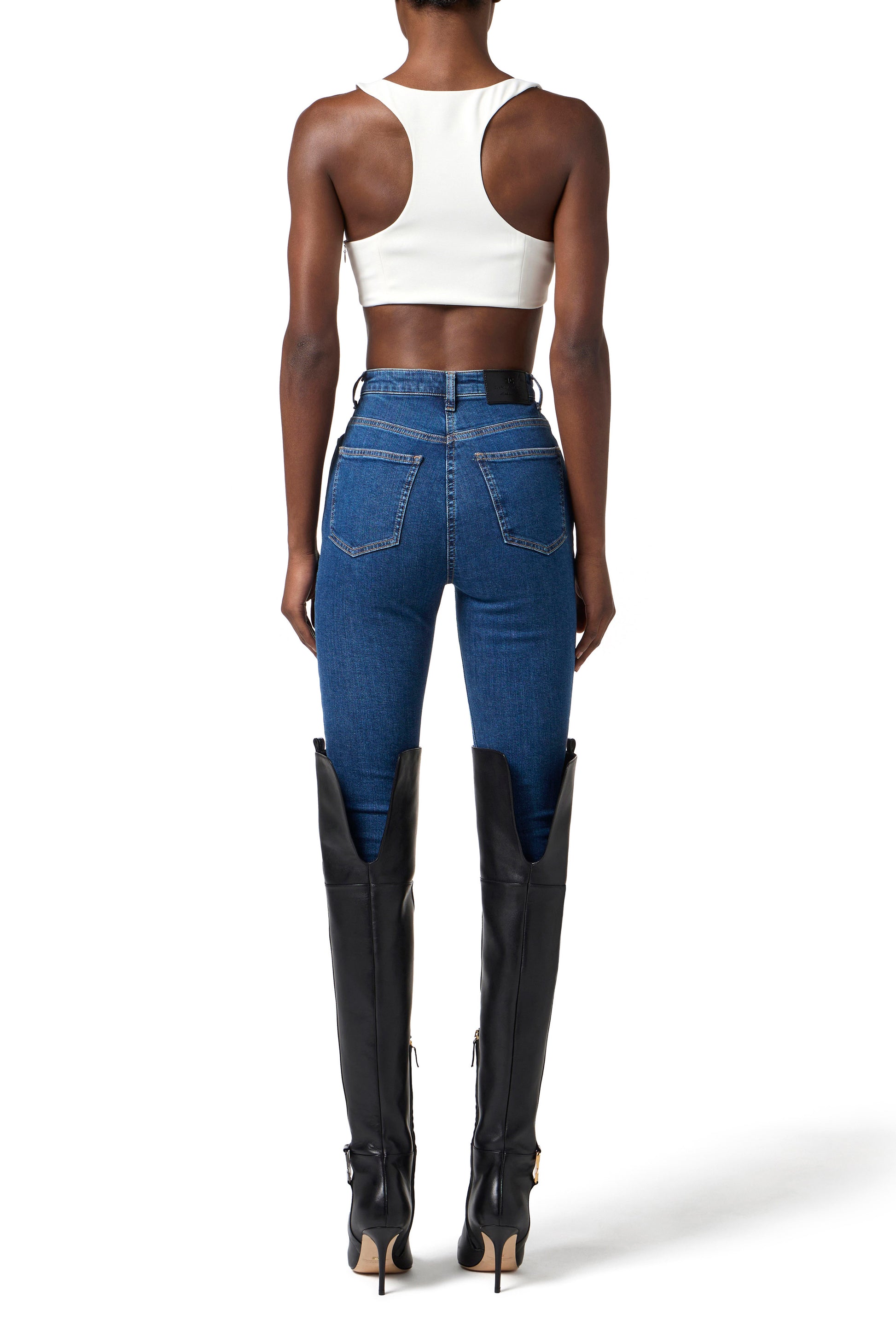 Top in lightweight crêpe fabric with slim fit. With a racerback neckline, it is embellished with crystals embroidered with snake-inspired patterns, fading into a delicate colour shading.