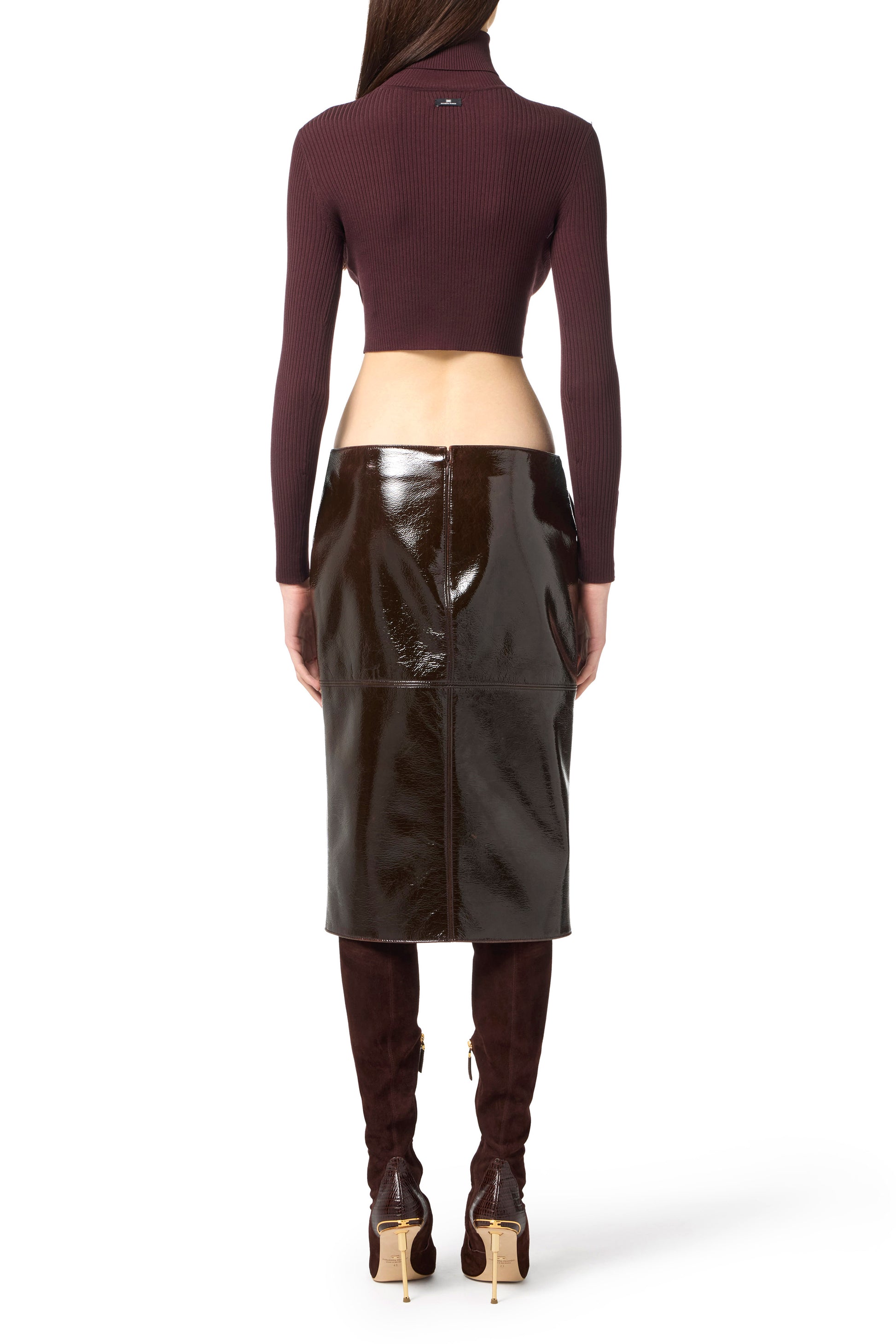 Top in ribbed knit fabric with slim fit. The garment has a turtleneck collar, long sleeves finished with ribbing and personalised cuffs with buttons for an extra style detail.