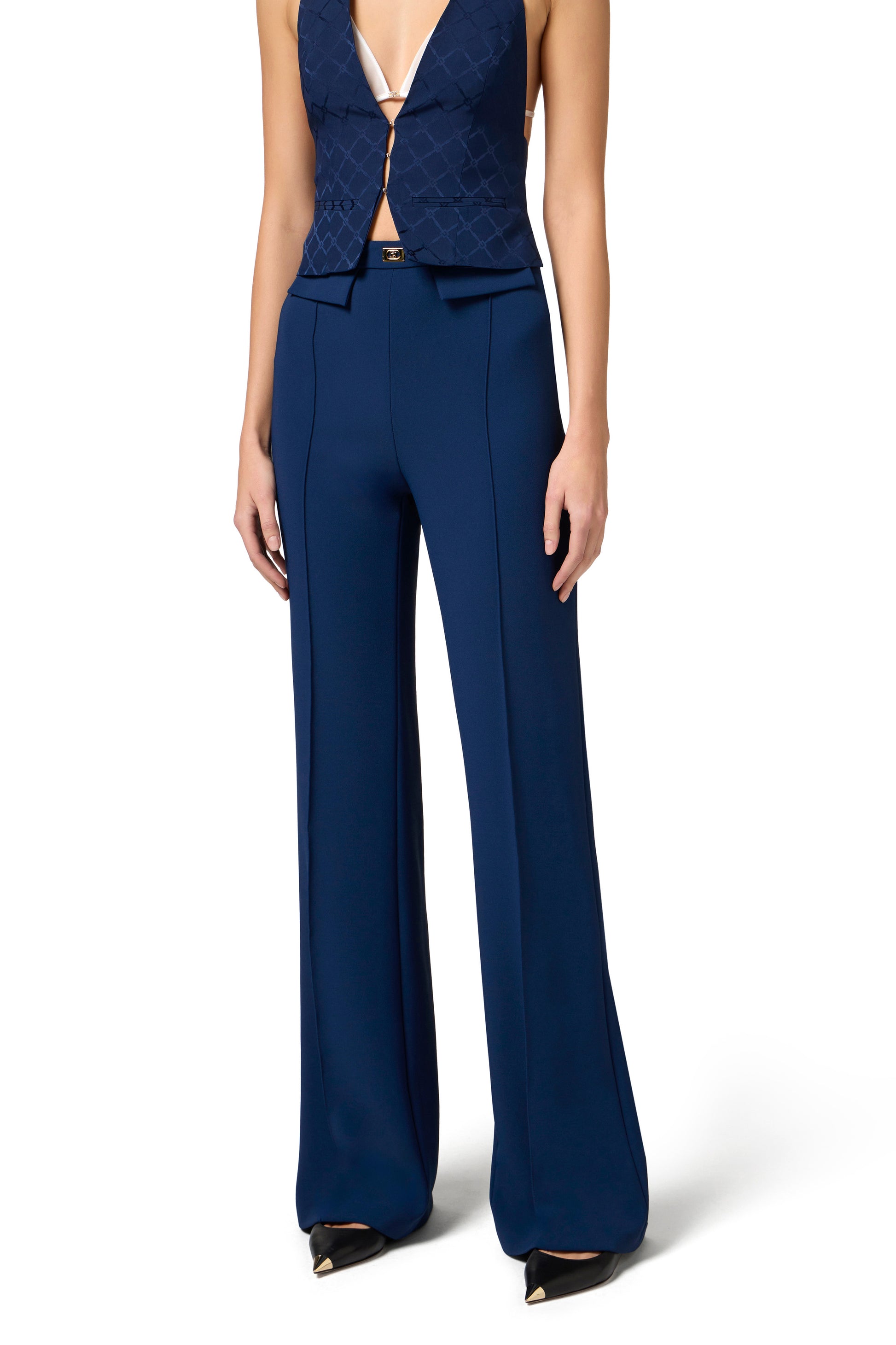 Trousers in stretch crêpe fabric with flaps on the front and ribbing. The golden metal logo plaque on the waistband embellishes the garment. Slim fit. Part of the Essential collection, to create the perfect wardrobe.