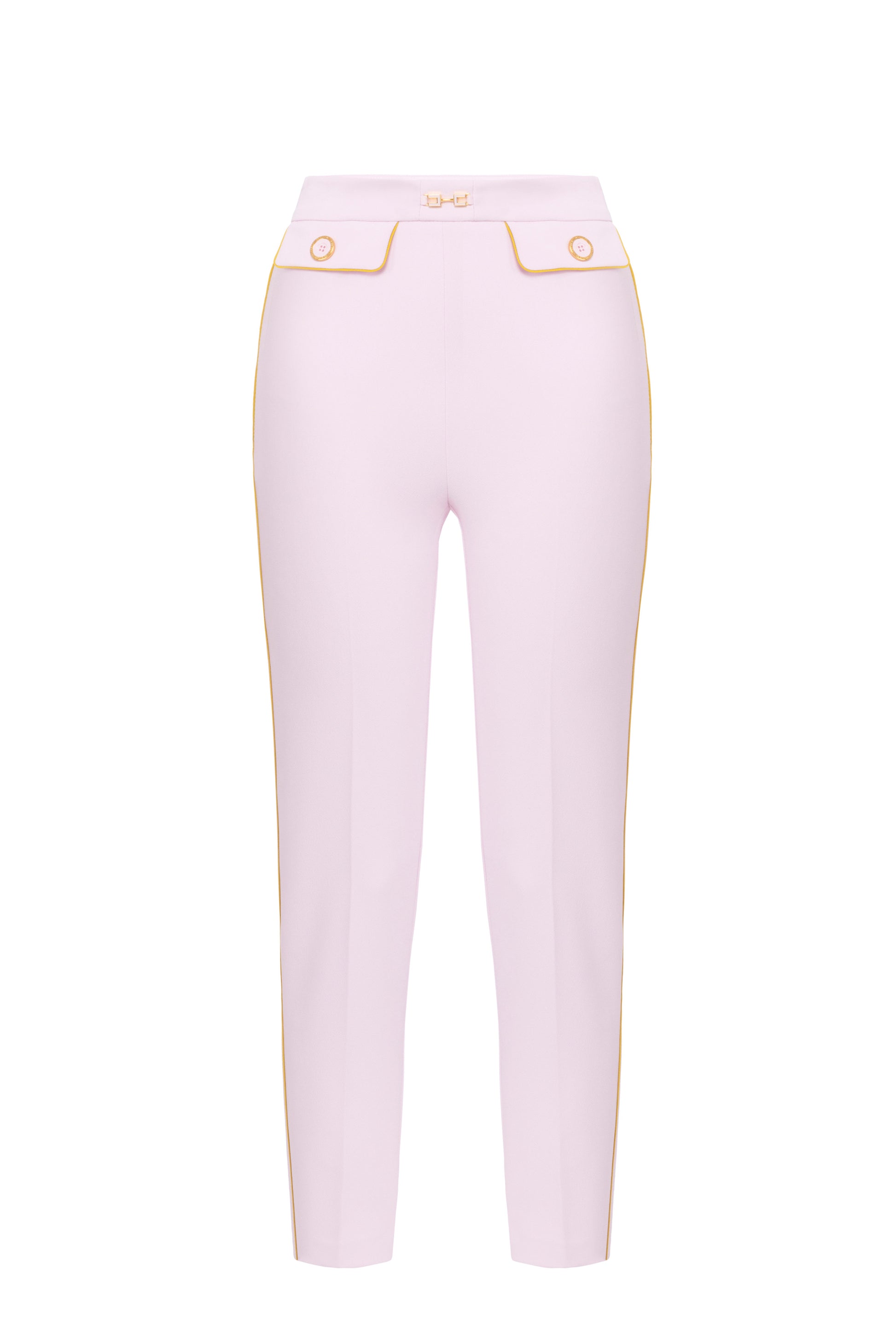 Trousers in crêpe fabric with piping and jewelled horsebit