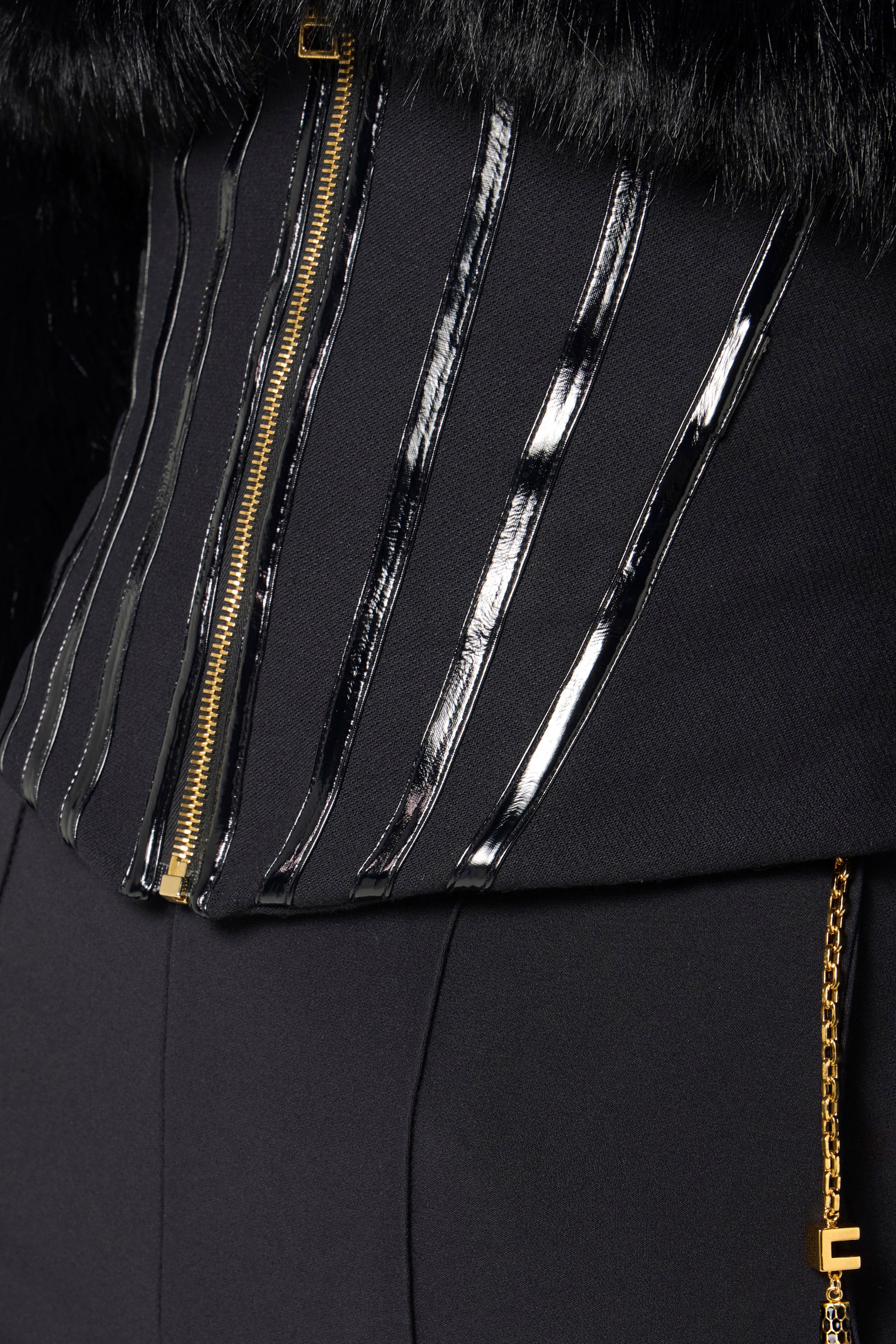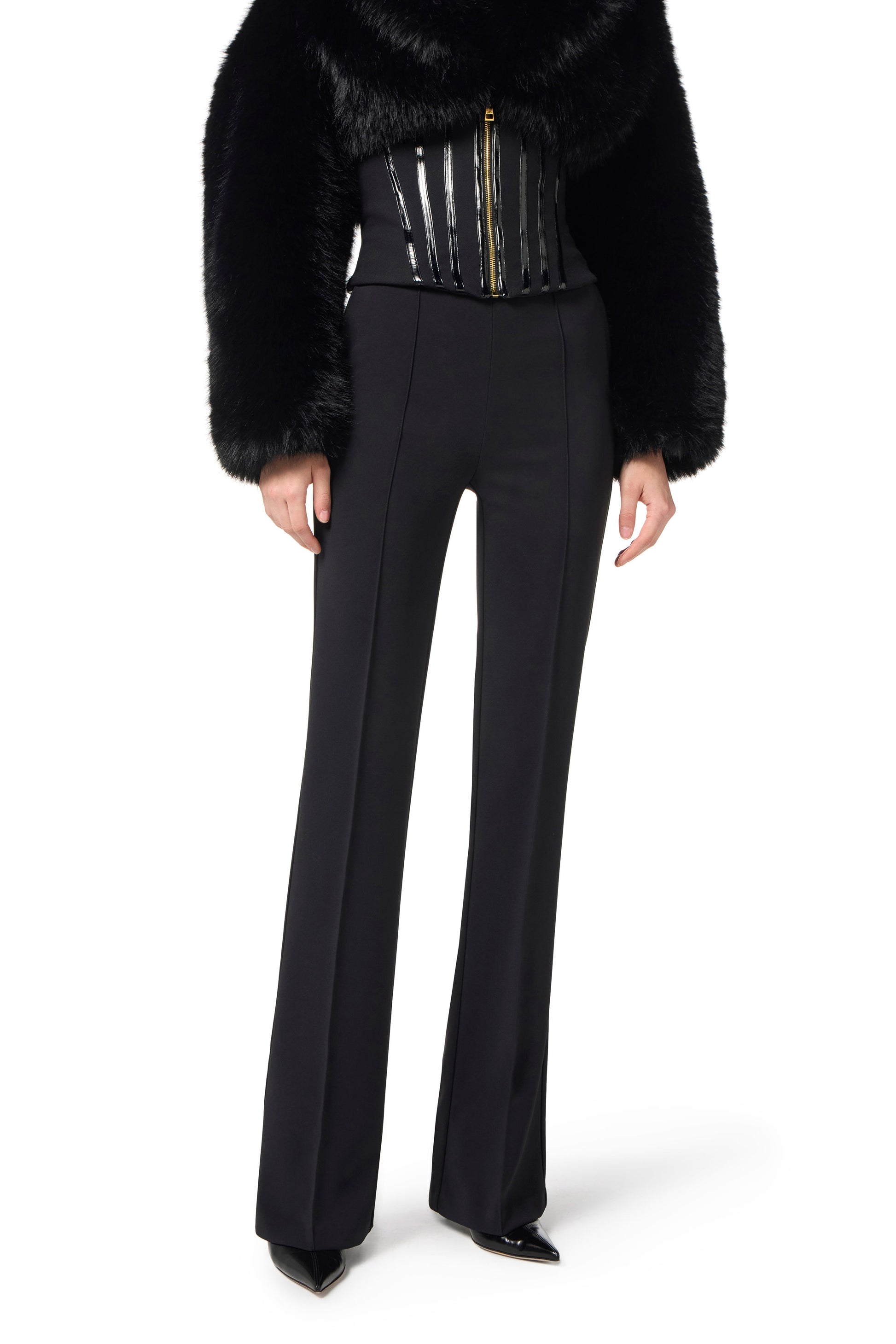 Trousers in lightweight crêpe fabric with jewel chain
